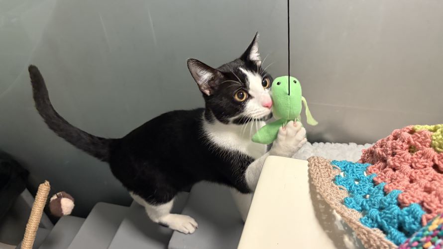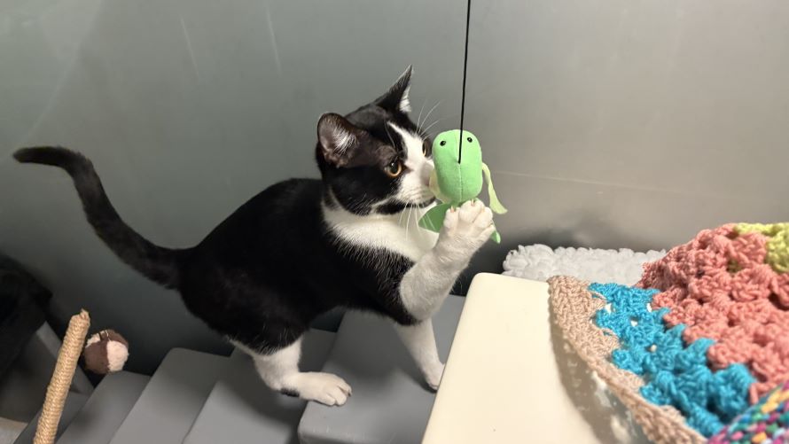 Bertie loves to be on the move and active. He is always exploring or playing. Once he's used some of his energy up, Bertie enjoys nothing more than a good cheek scratch and a lap snuggle.