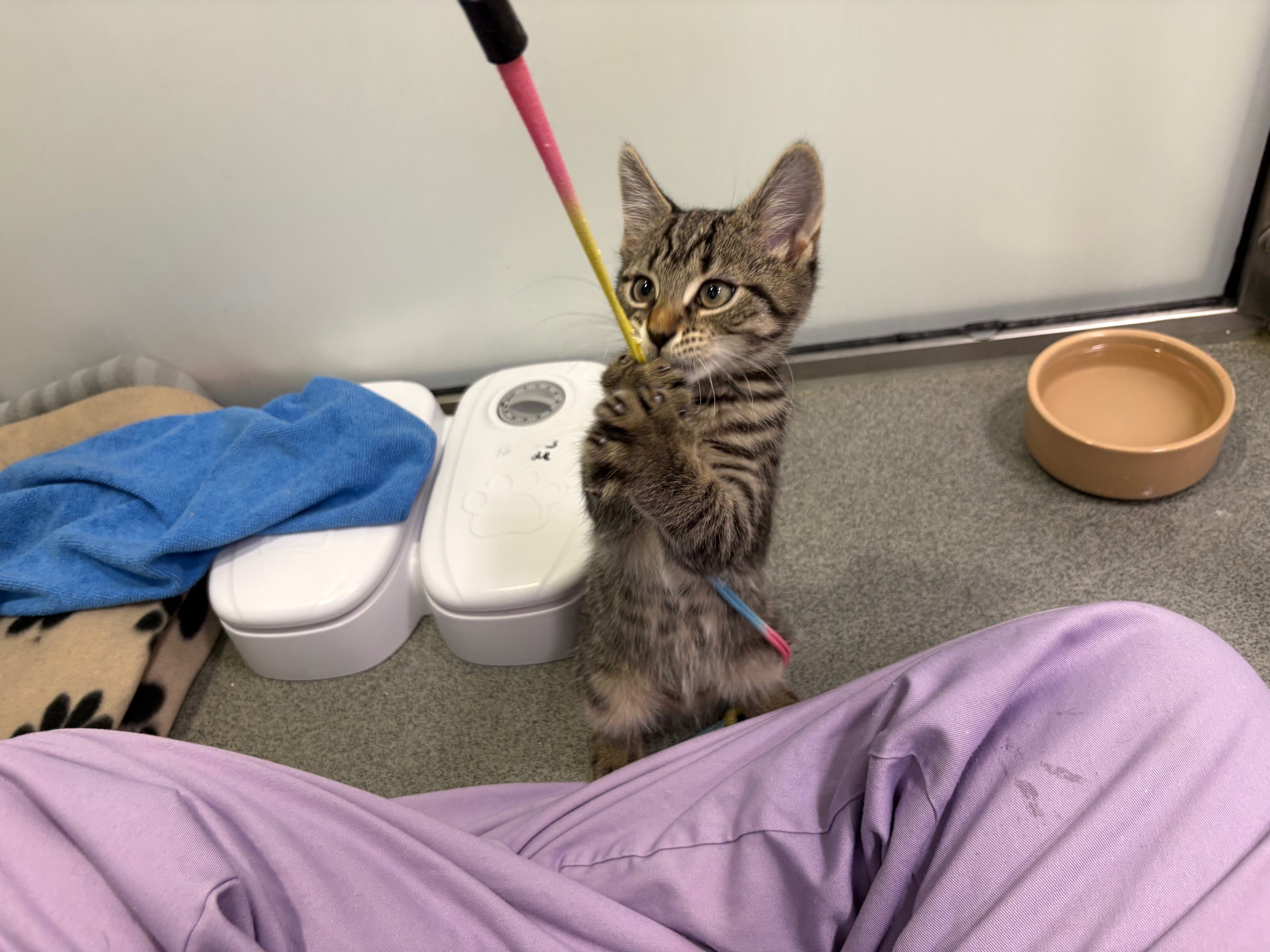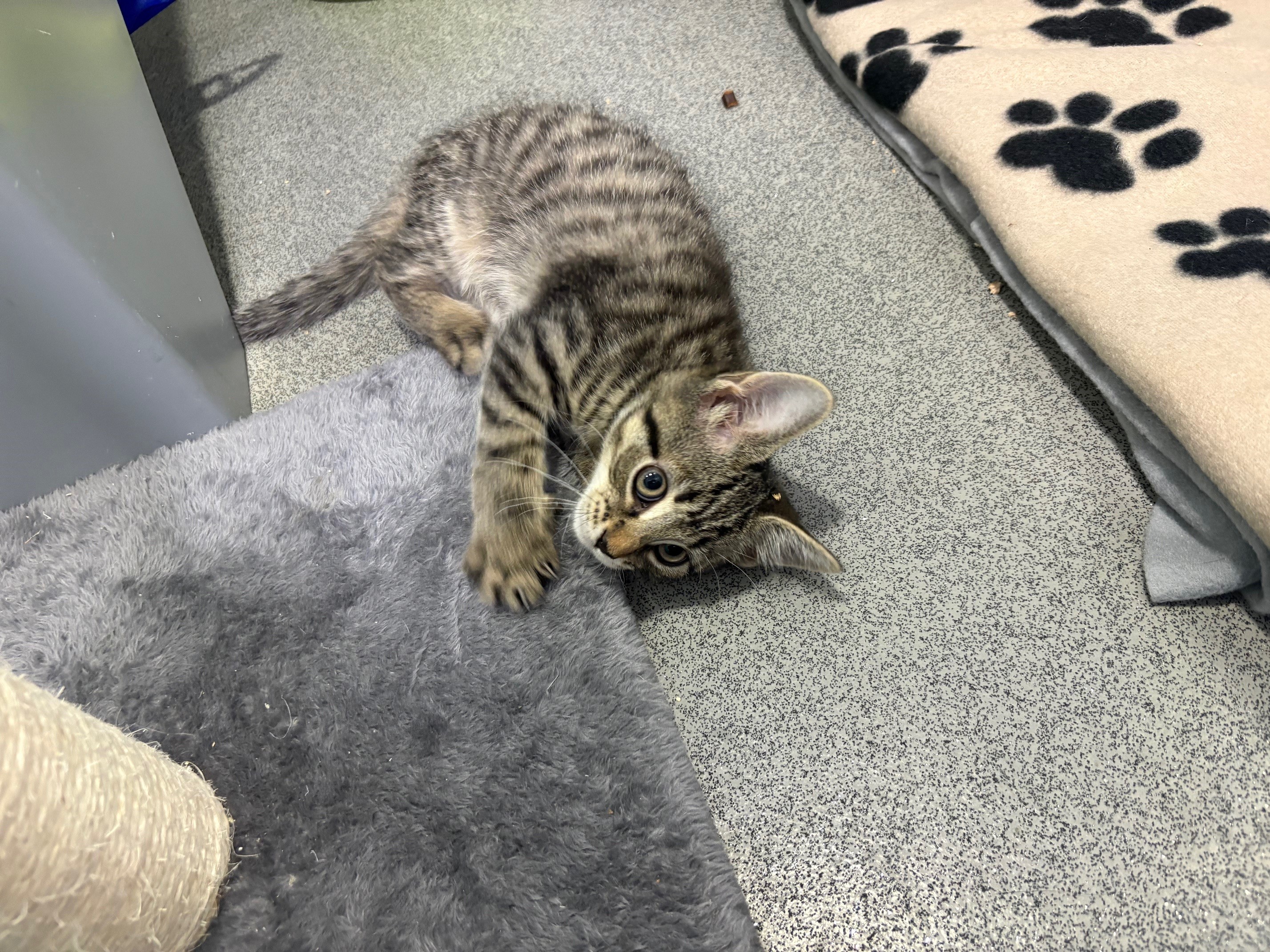 Weather he is chasing strings or curled up on a lap this tiny kitten knows how to keep life good.