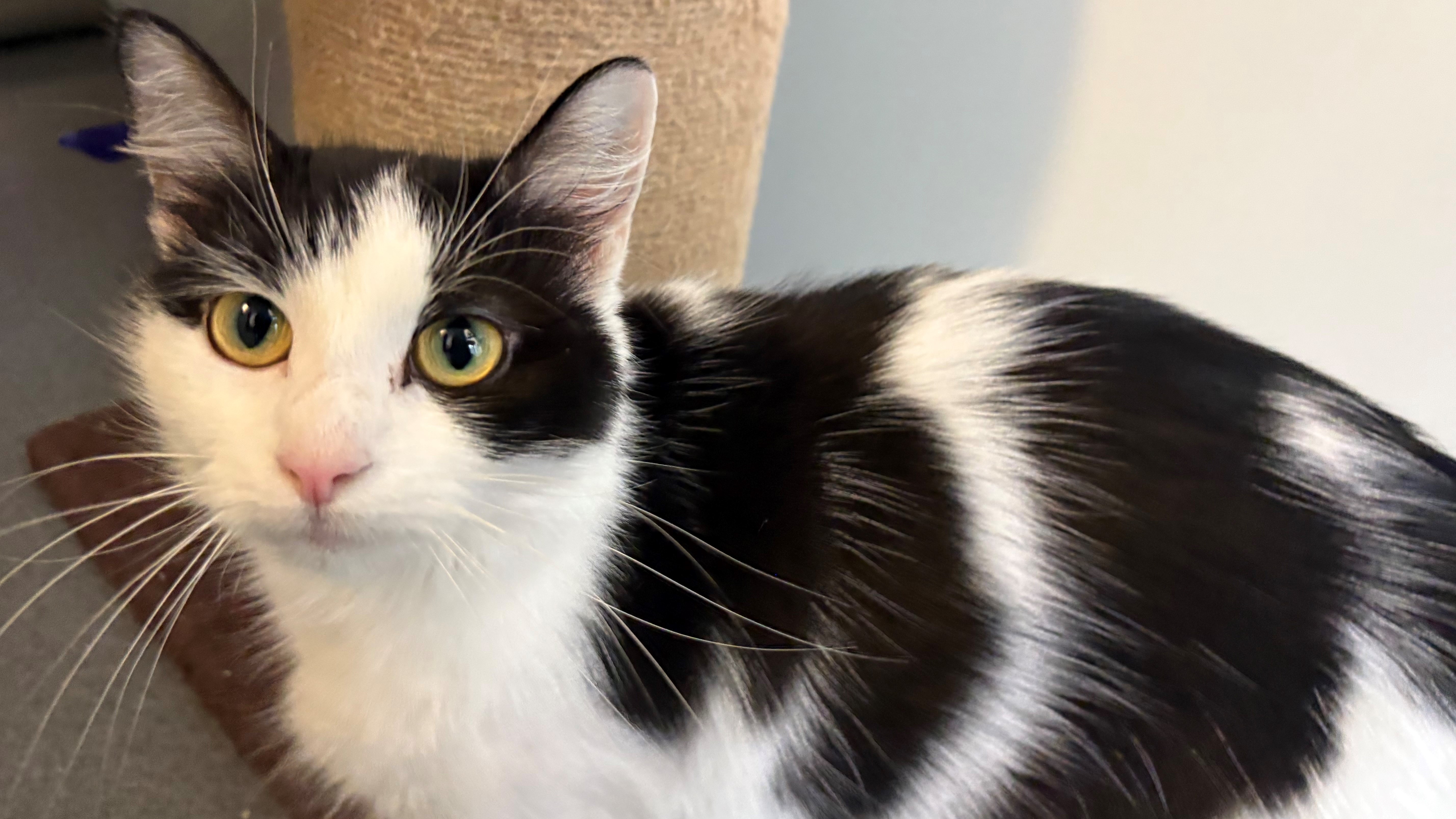 Bubbles is bursting with love and fun! Whether she's leaning in for strokes, sunbathing contently in a sunspot, or playing with her favourite toy, Bubbles will brighten your day! She really is an angel in a glossy fur coat.