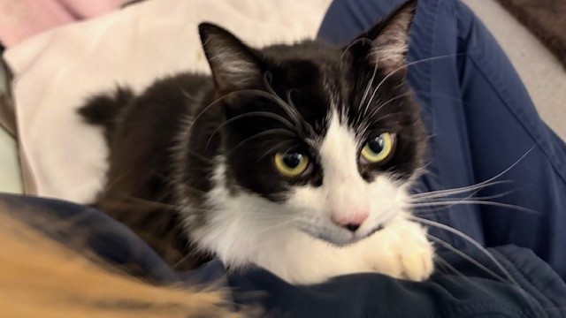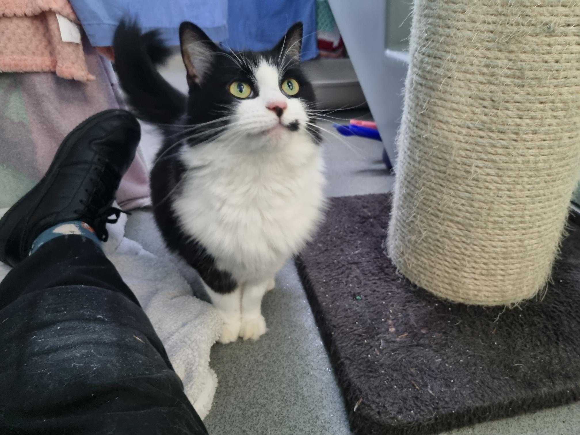Cleo has a purr as big as her heart! This wonderful girl loves nothing more than a good snuggle session, followed by a cheeky play! If she's in the mood, you may also have the privilege of your lap being used as her favourite snooze spot! This sweetie has a way of worming her way deep into your heart, how can you resist that floof!