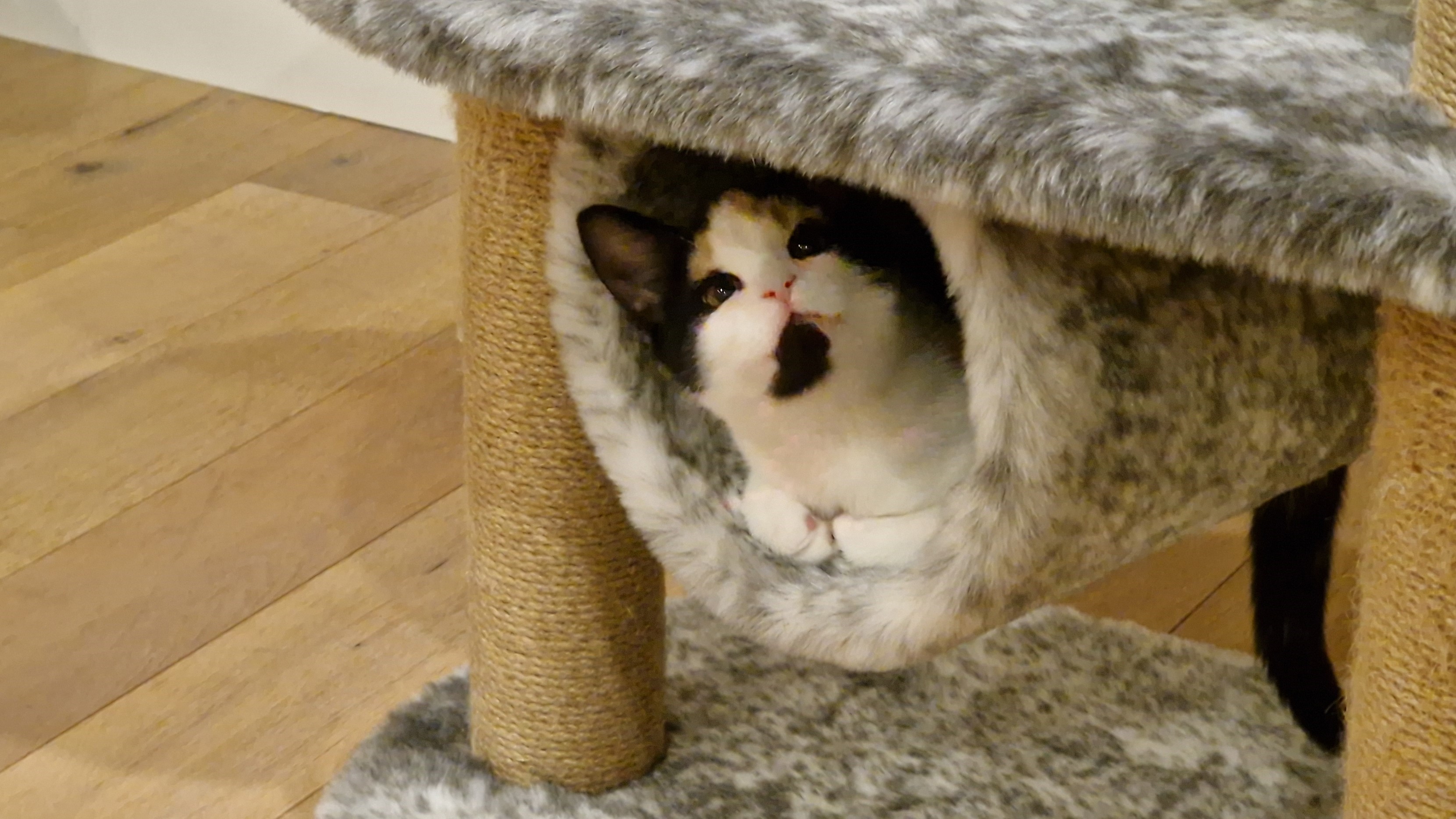 Crème Brulee can be sensitive of new people and environments, but quickly blossoms, especially when play is involved! Once a bit more settled, she enjoys gentle head rubs and curling onto a lap, whilst purring away.