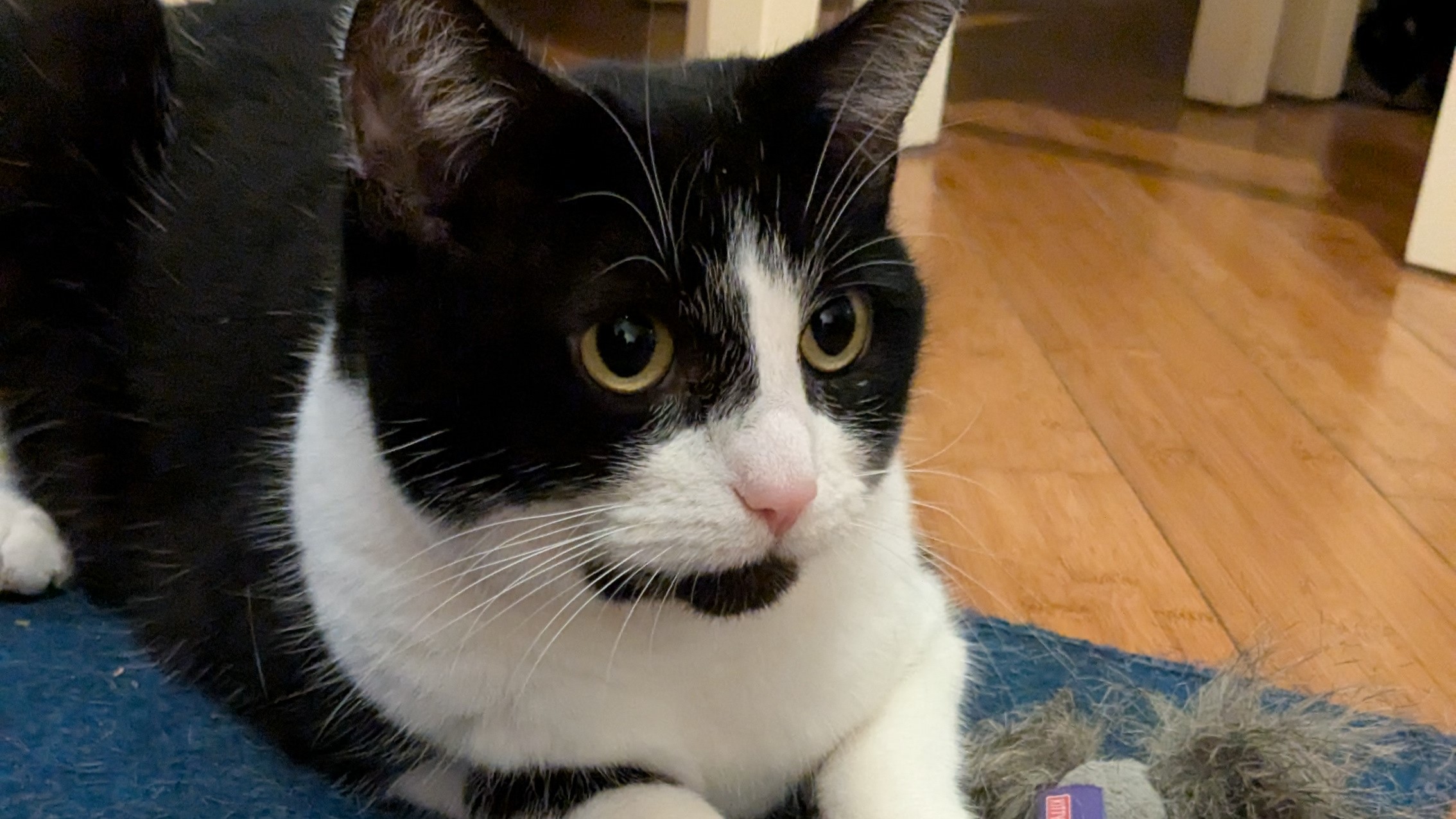 This sweet girl has had a long journey at Battersea, and is ready to find her paws in her new home. She loves to curl up on a lap or under a blanket, and will follow her foster carer from room to room, purring and kneading.