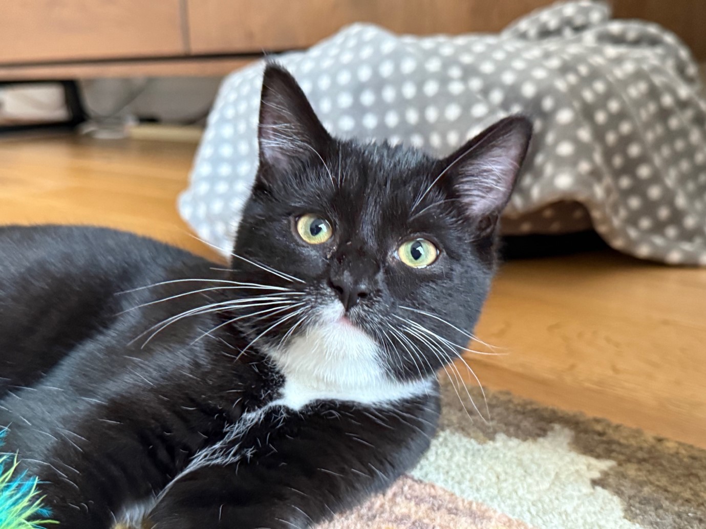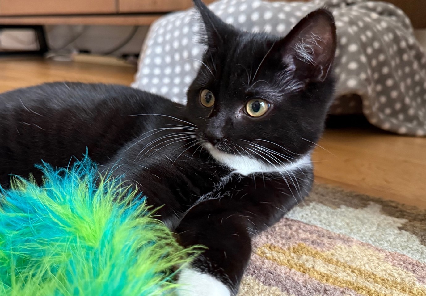 Fondant is a gentle, sensitive kitten who has truly come into her own. Since having a little space away from her siblings, her confidence has blossomed beautifully. Now, this soft and affectionate girl purrs the moment she’s touched and loves nothing more than being close to her favourite human.