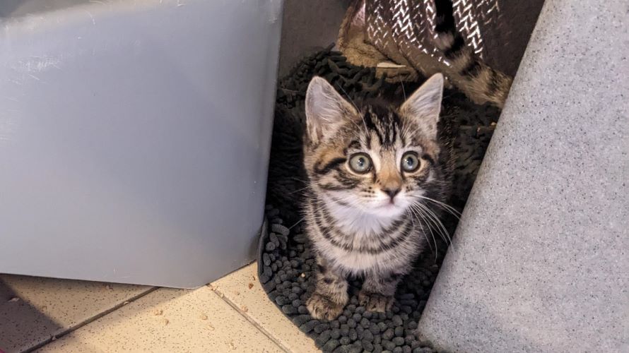 In her new home, Gilmore will need outside access once she is old enough. If her family will be out for the working day, then she will require a cat flap to come and go.