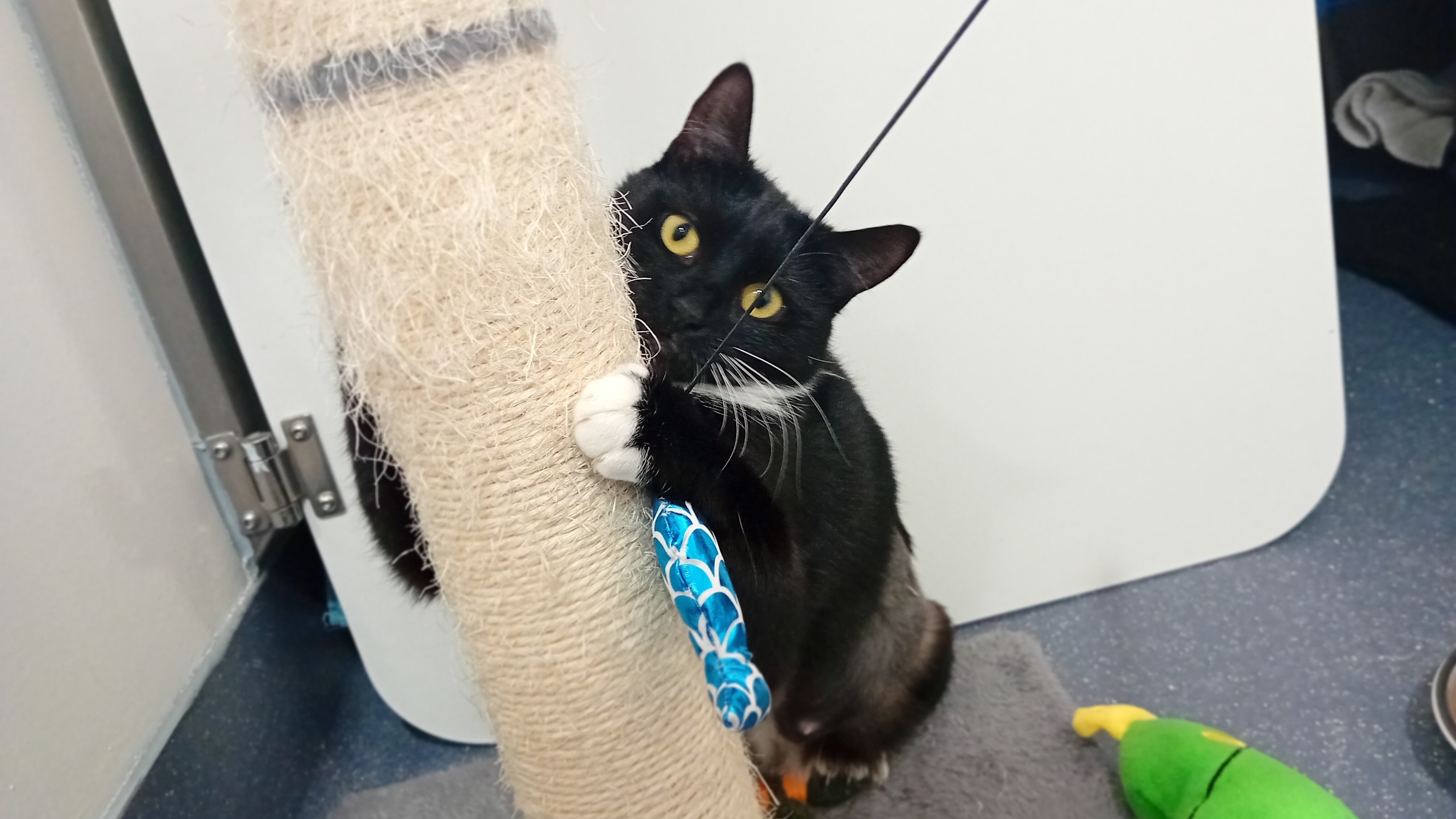 Hester has shown her hunting skills while at Battersea. She loves to play, especially with a string toy and will demonstrate her pouncing abilities! She will have her new family laughing at how she plays and the funny positions she gets herself into. She is a lovely lady absolutely bursting with character - could you be her person?