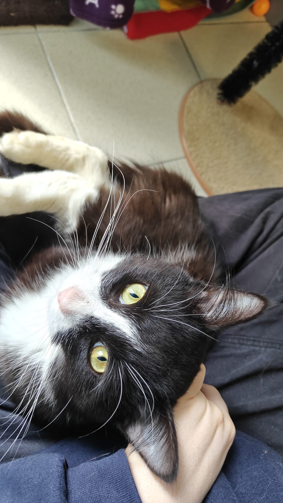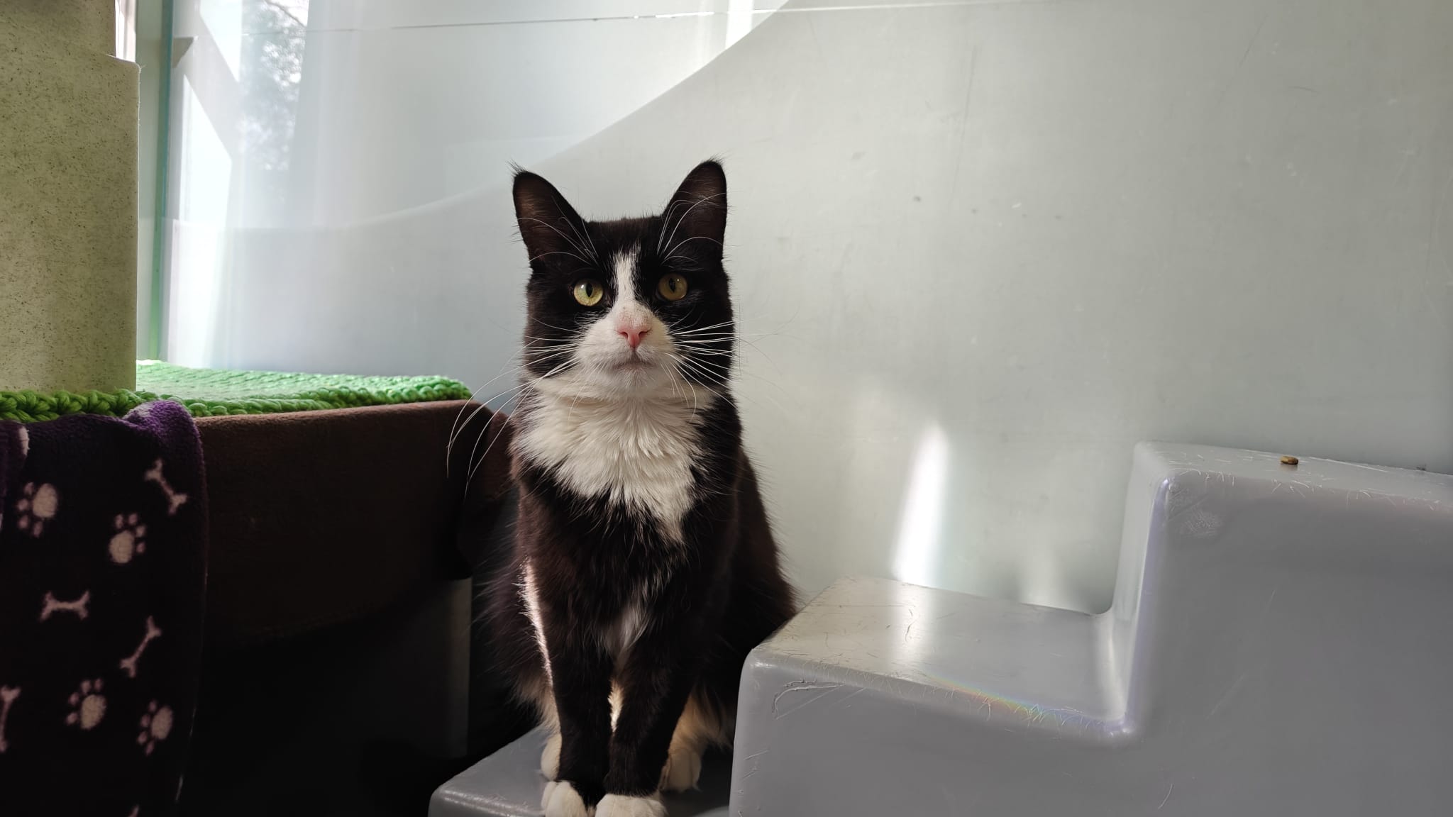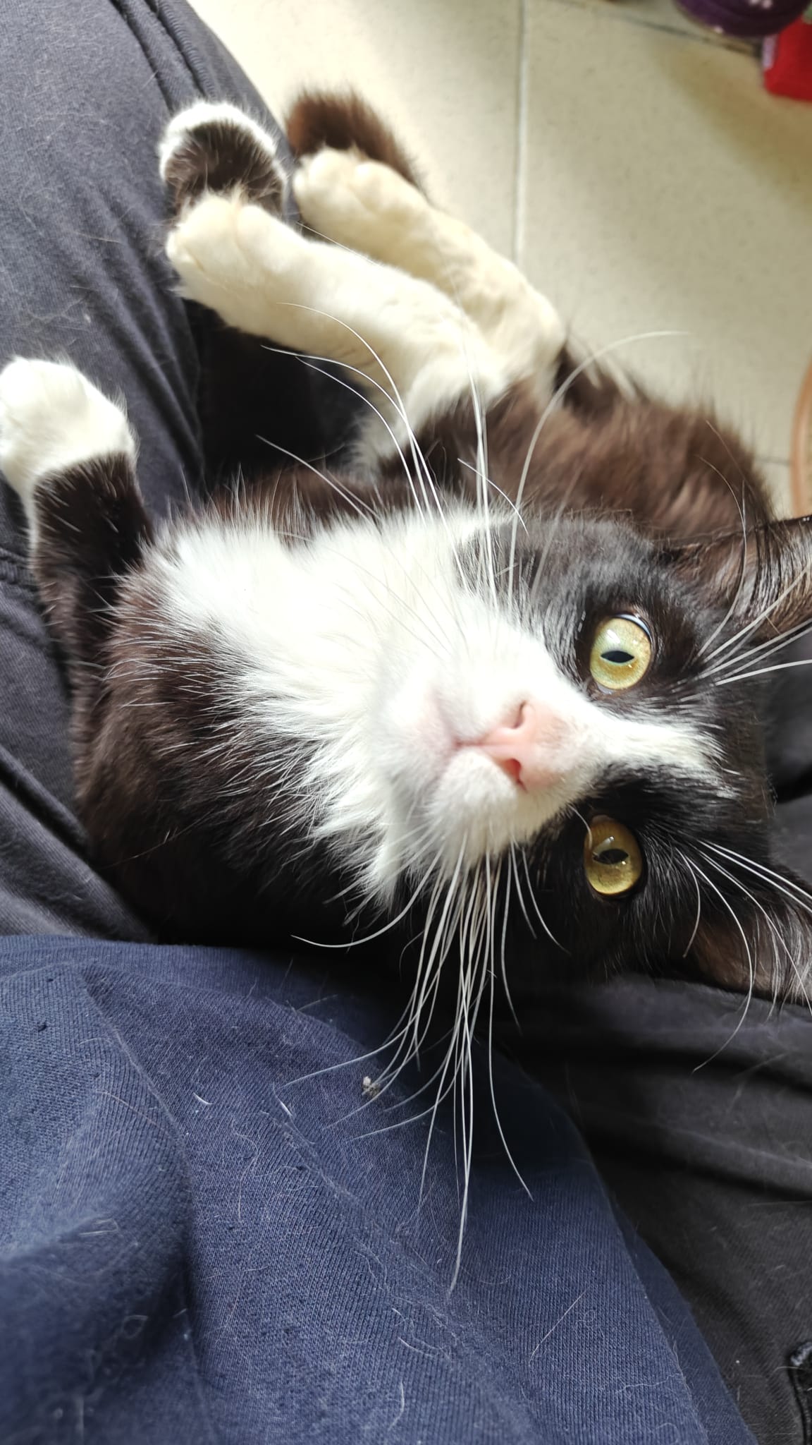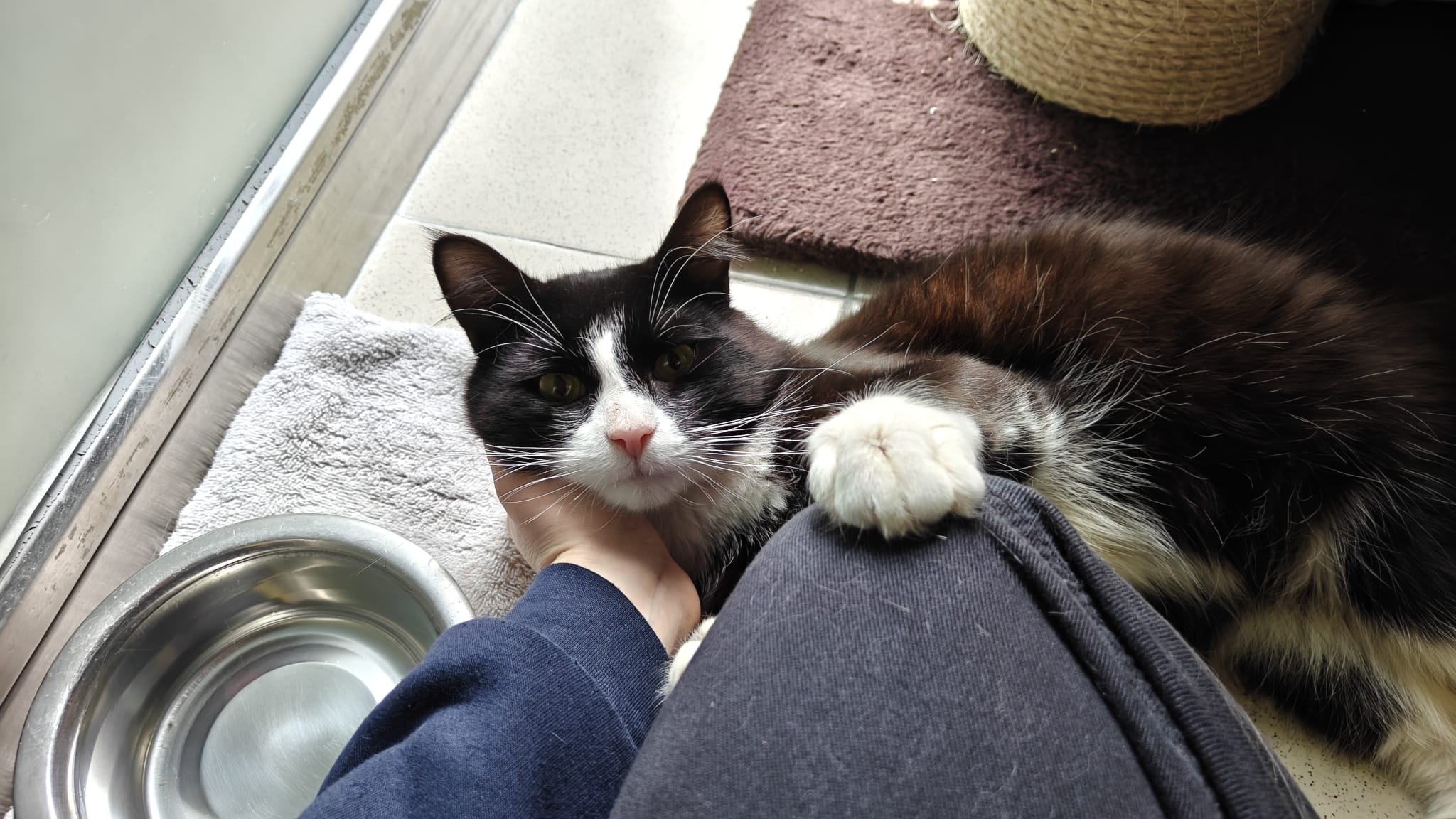 Joshua loves attention and will happily approach people for fuss and strokes. He’s a real lap cat too, often rolling into laps and settling in for a snooze. When he’s feeling especially content, he can often be found happily making biscuits.