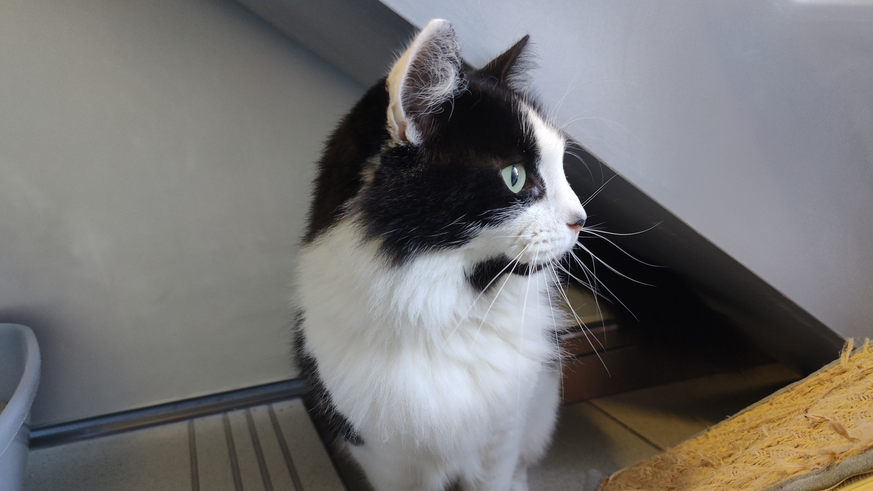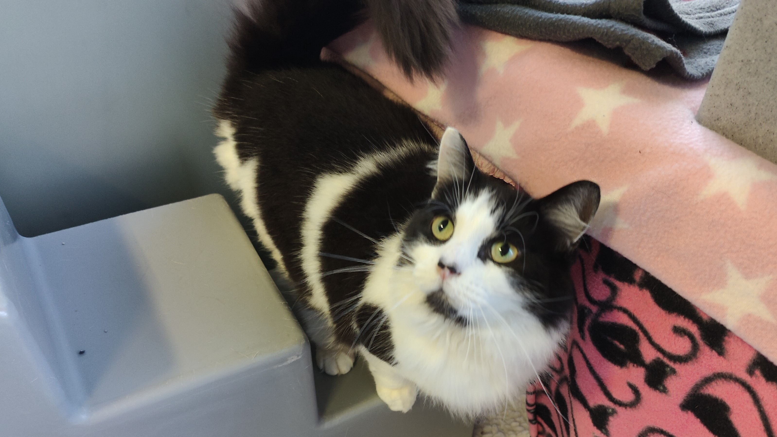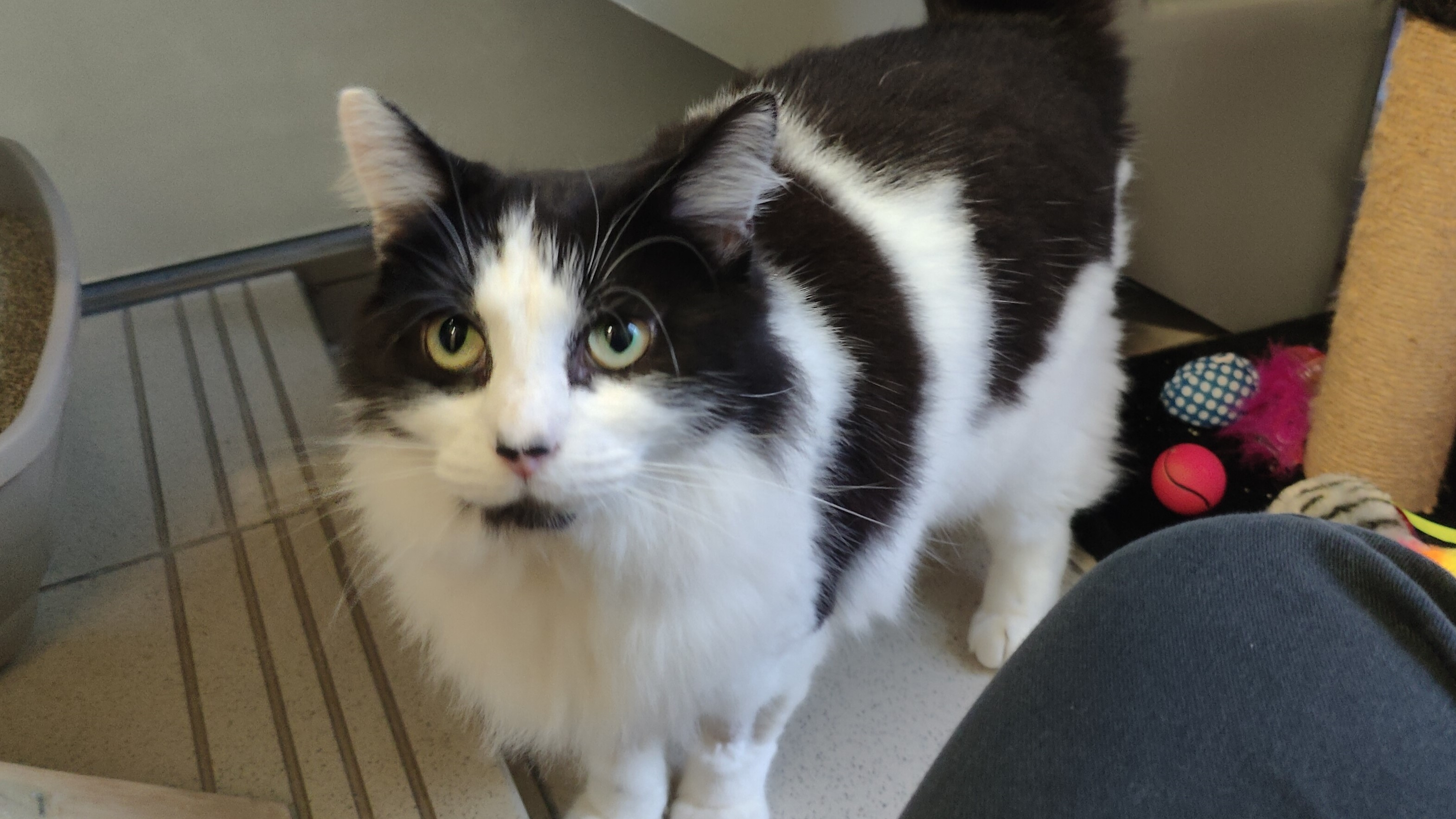 She likes a quiet environment, as some noises worry her, but once she's feeling settled, she loves to approach for a fuss or play!
