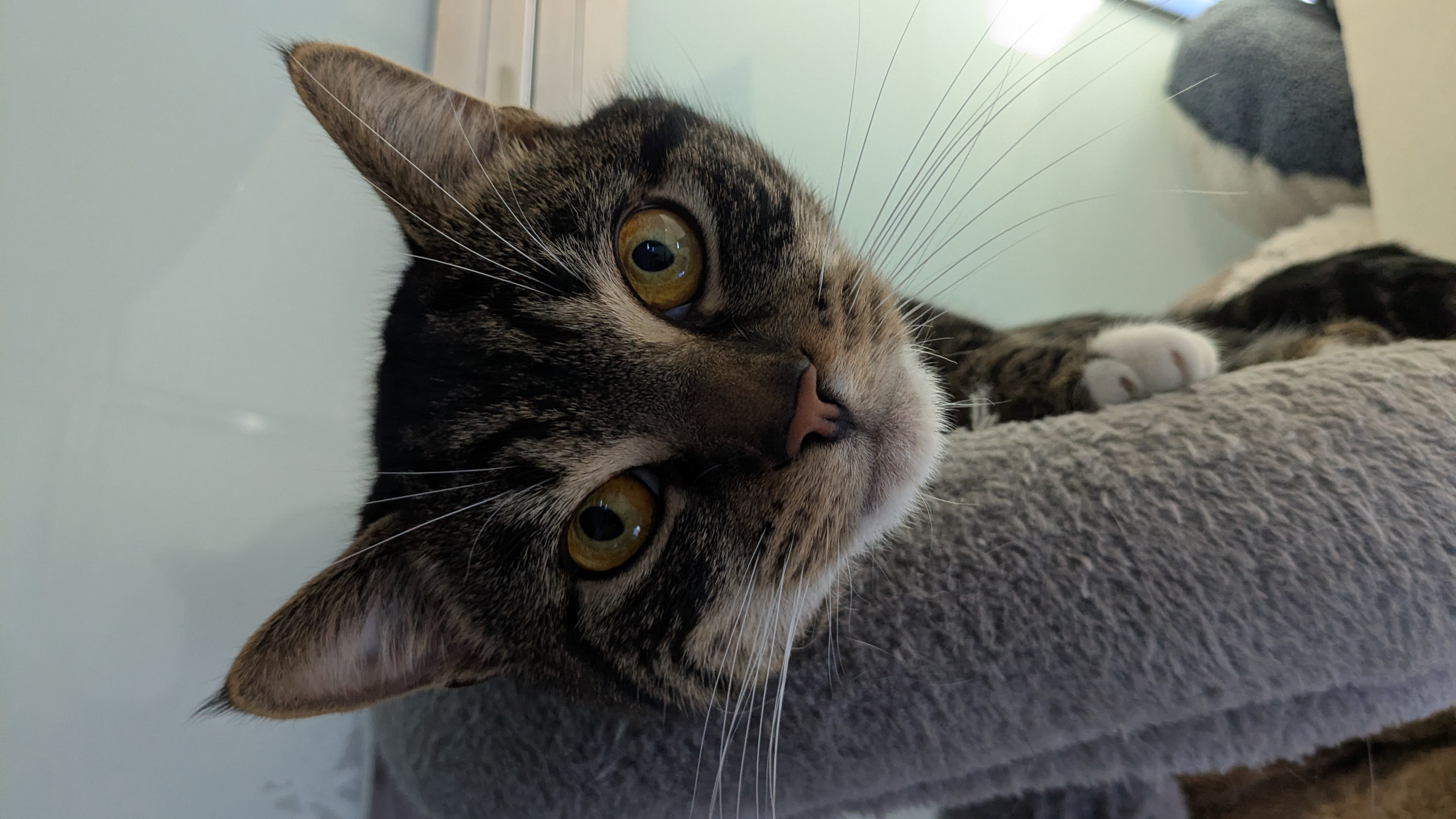 Leo is a sweet, laid-back lad that enjoys gentle fuss when he feels like it, and has a front row seat to the world from the top of his cat tree. Independent yet affectionate, he’s the perfect companion for someone who appreciates a relaxed, charming kitty who knows how to enjoy life on his own terms.