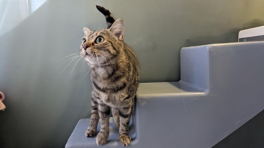 Lucky enjoys having outdoor adventures so will need outside access in her new home. She'll need a cat flap if her new owners will be out for the working day.