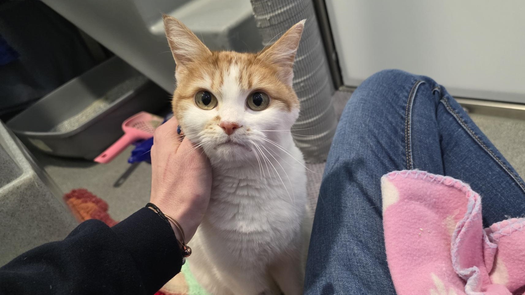 Lulu is a rare ginger and white girlie! This little gem has the hugest heart and adores her owners. She loves to spend time with you and enjoys head scratches! She's also a typical cat, if she's not following you around you'll find her snoozing away, eating her food, or batting a toy around.