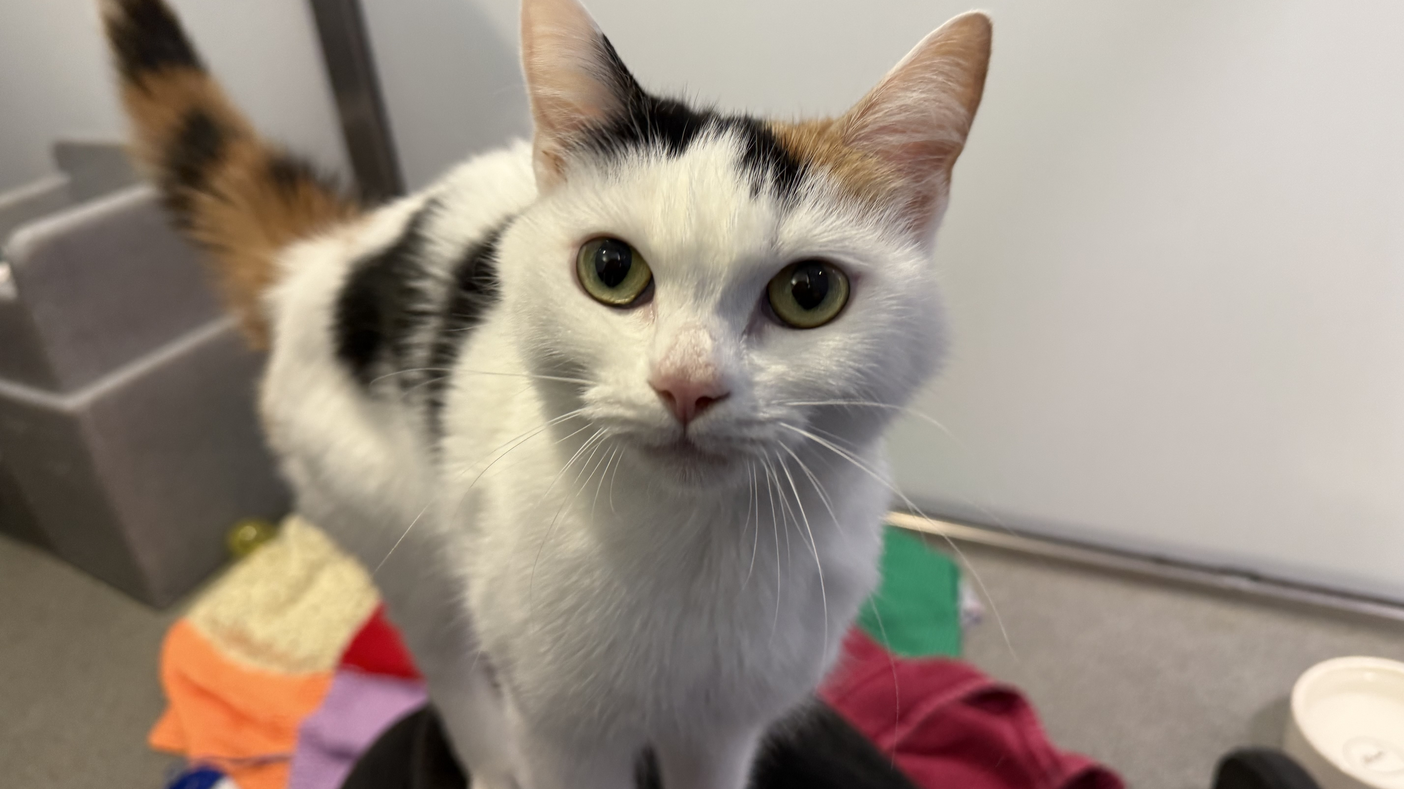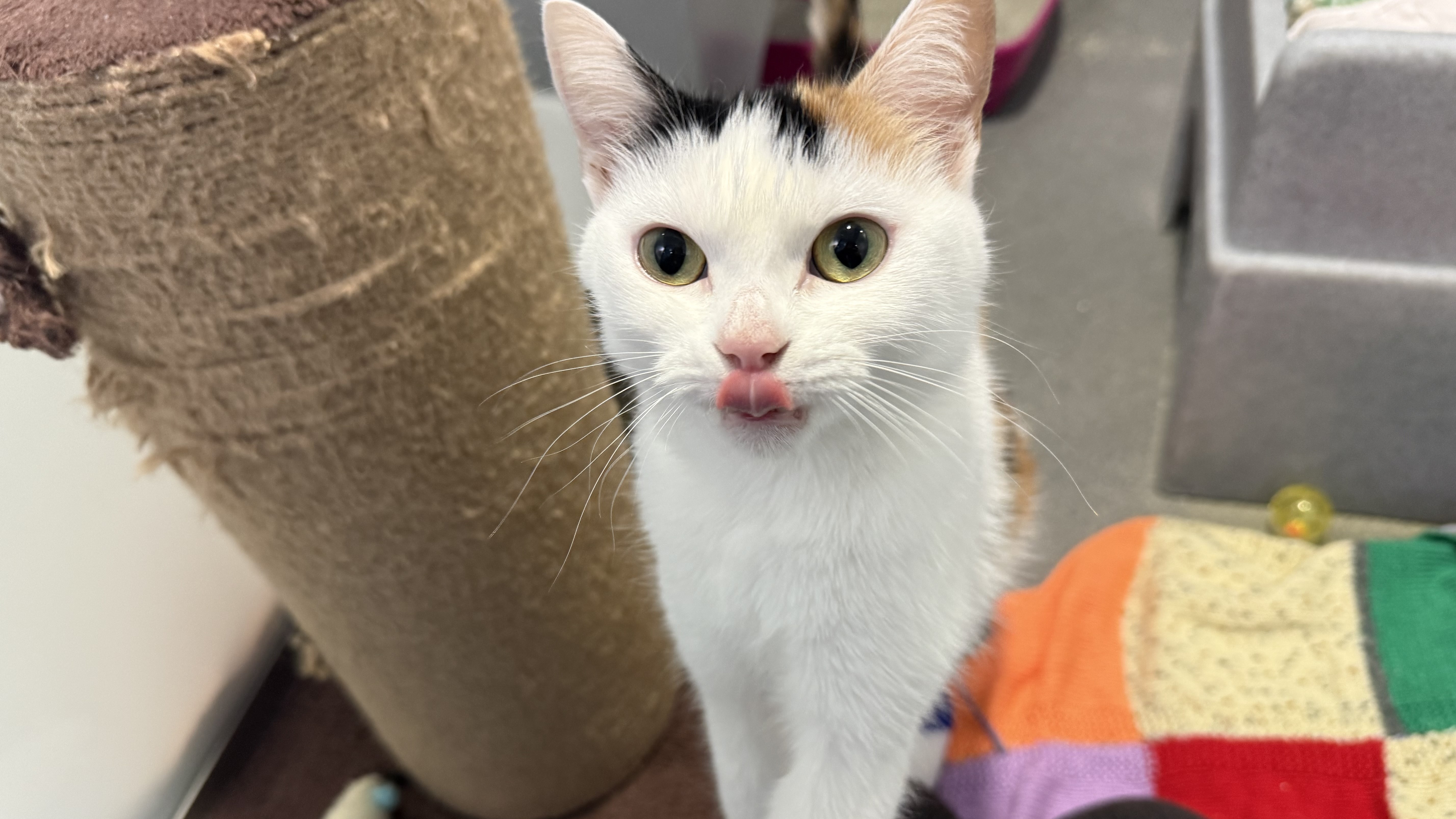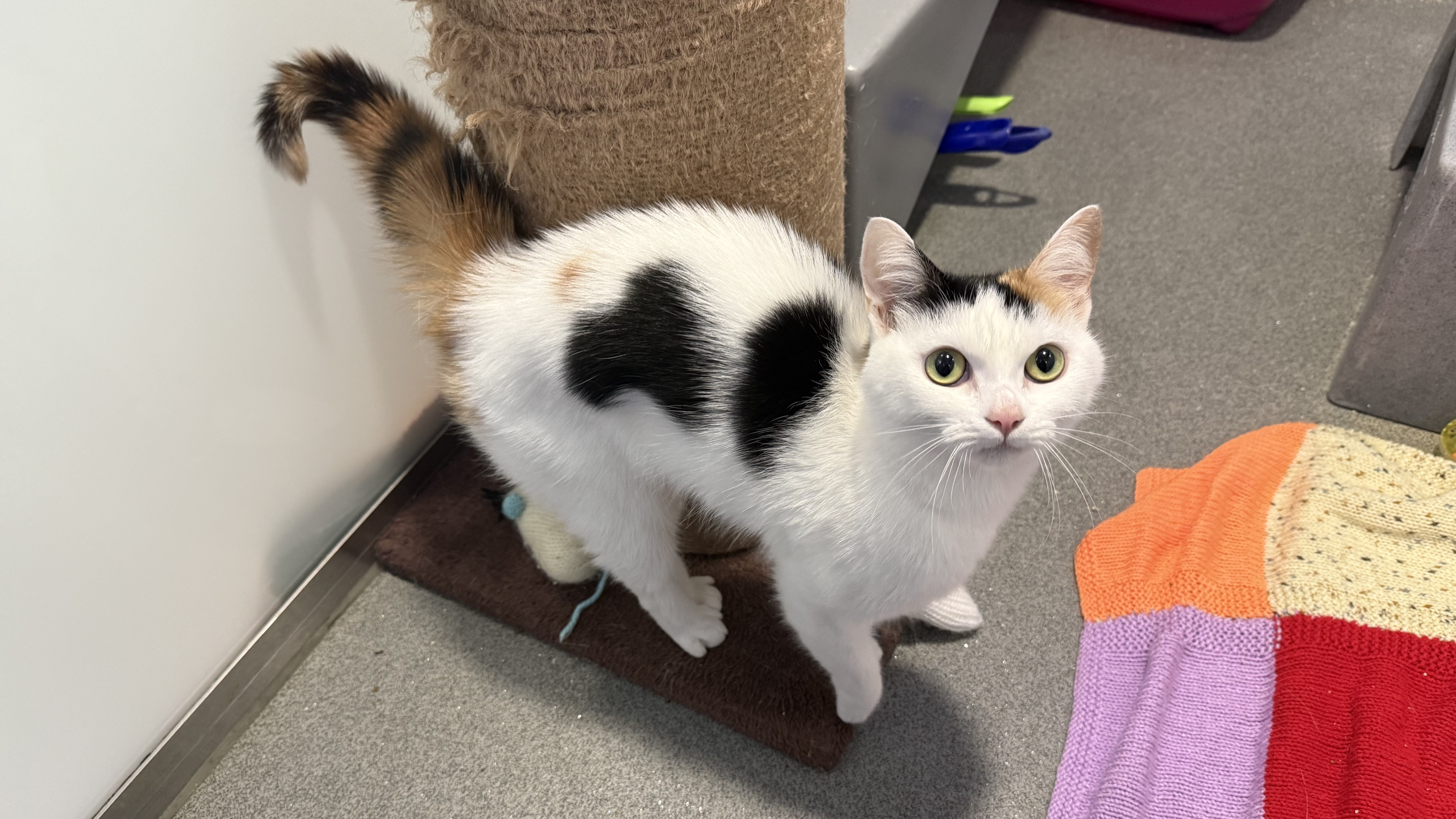 Missy adores spending time with her favourite people and will greet them with lots of meows. She loves lots of fuss and will flop down beside you so she can enjoy lots of head and chin rubs.