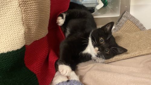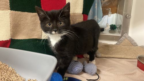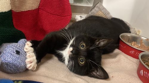 Bouncy Noodles is a gentle and loving kitten, looking for his forever home.