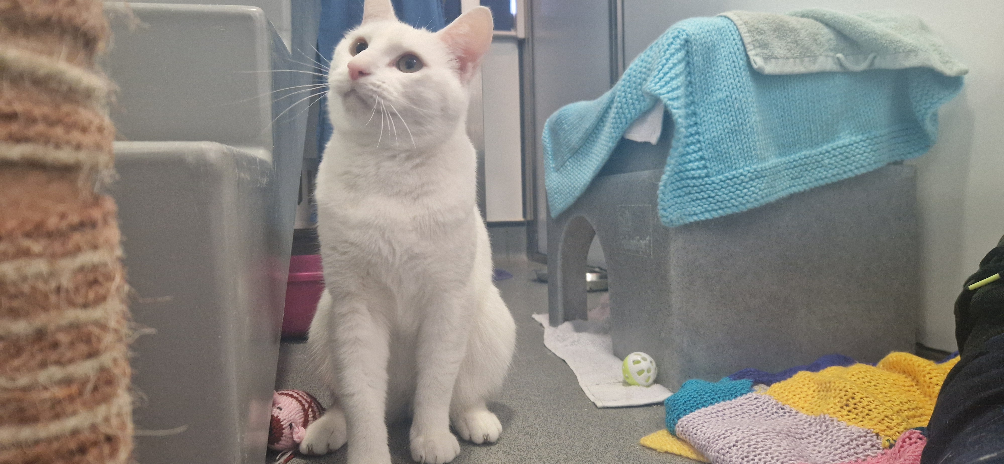 Olaf is a big smoochy boy who loves lots of cuddles and chin rubs and will come running down from his bed to greet any visitors.
