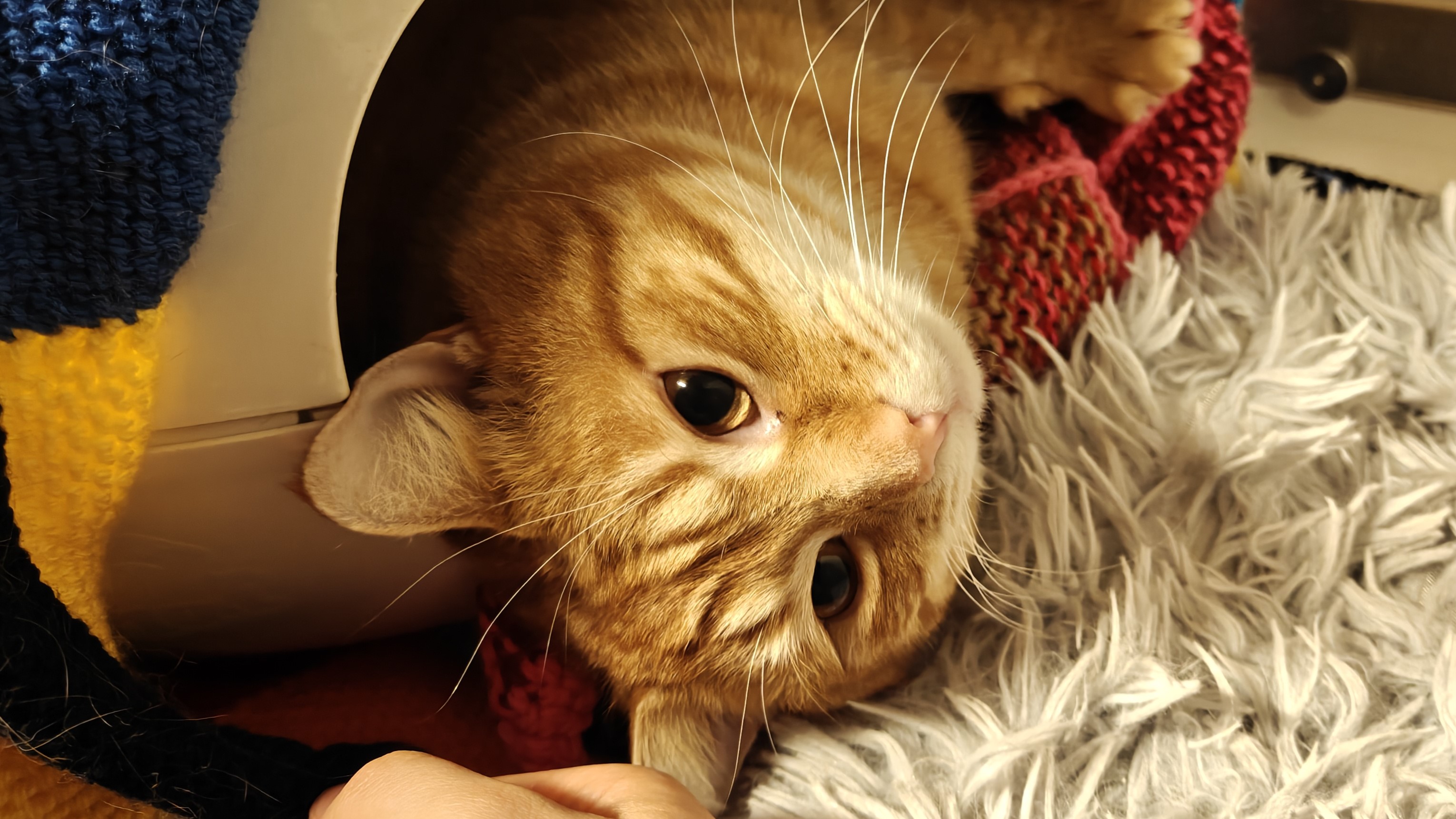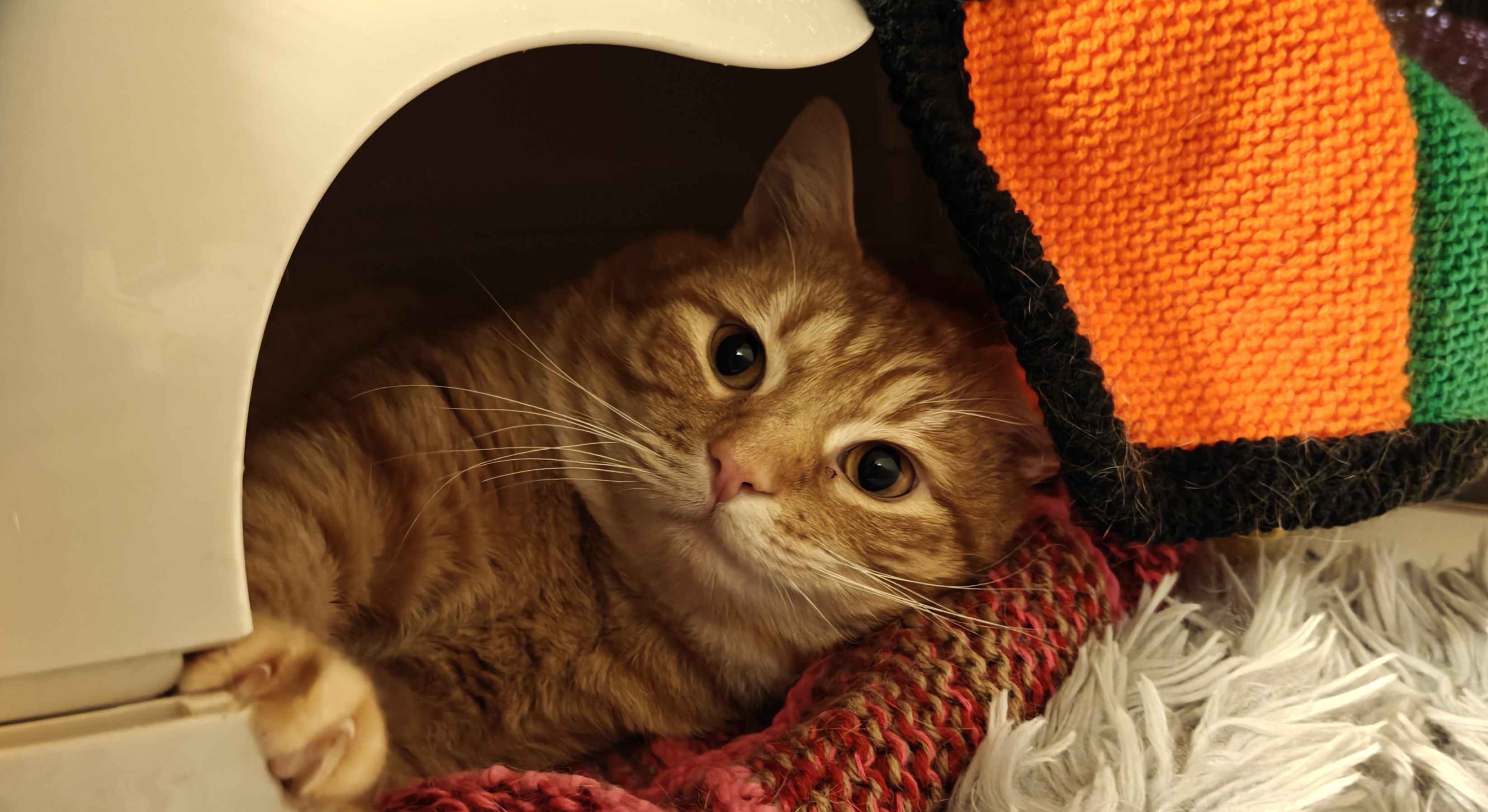 Pawdie came to us as stray, so we don't know much about his past. Despite this, he has been a delight in the cattery, rolling around and leaning into hands for plenty of head rubs.