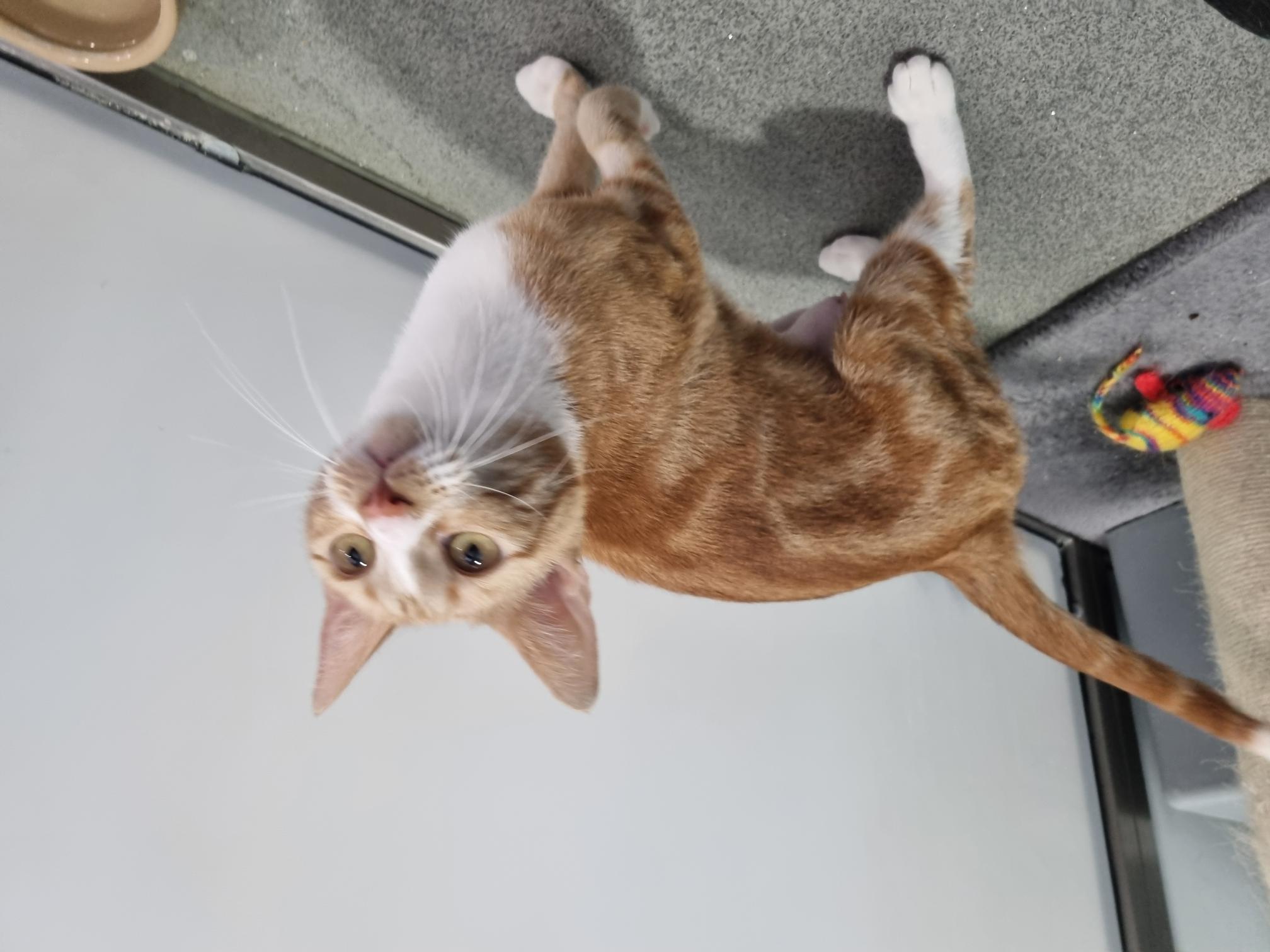 Saffron is not only a rare female ginger cat, her personality is as unique as her fur! She is the loveliest cat who enjoys a fuss, especially a lap on a cold winter night! Saffron adores her humans and spending time with them is her favourite pastime. She does also enjoy some quiet time on her own, curling up into a perfect croissant.