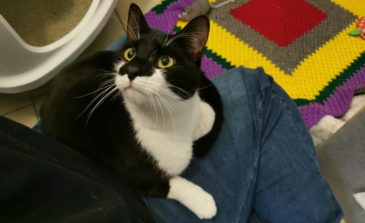 Meet Santa! He is a sensitive soul that is finding cattery life rather stressful. He is a very affectionate cat who, once he gets to know you, loves to head bump your hand, purr and curls up on a warm lap.