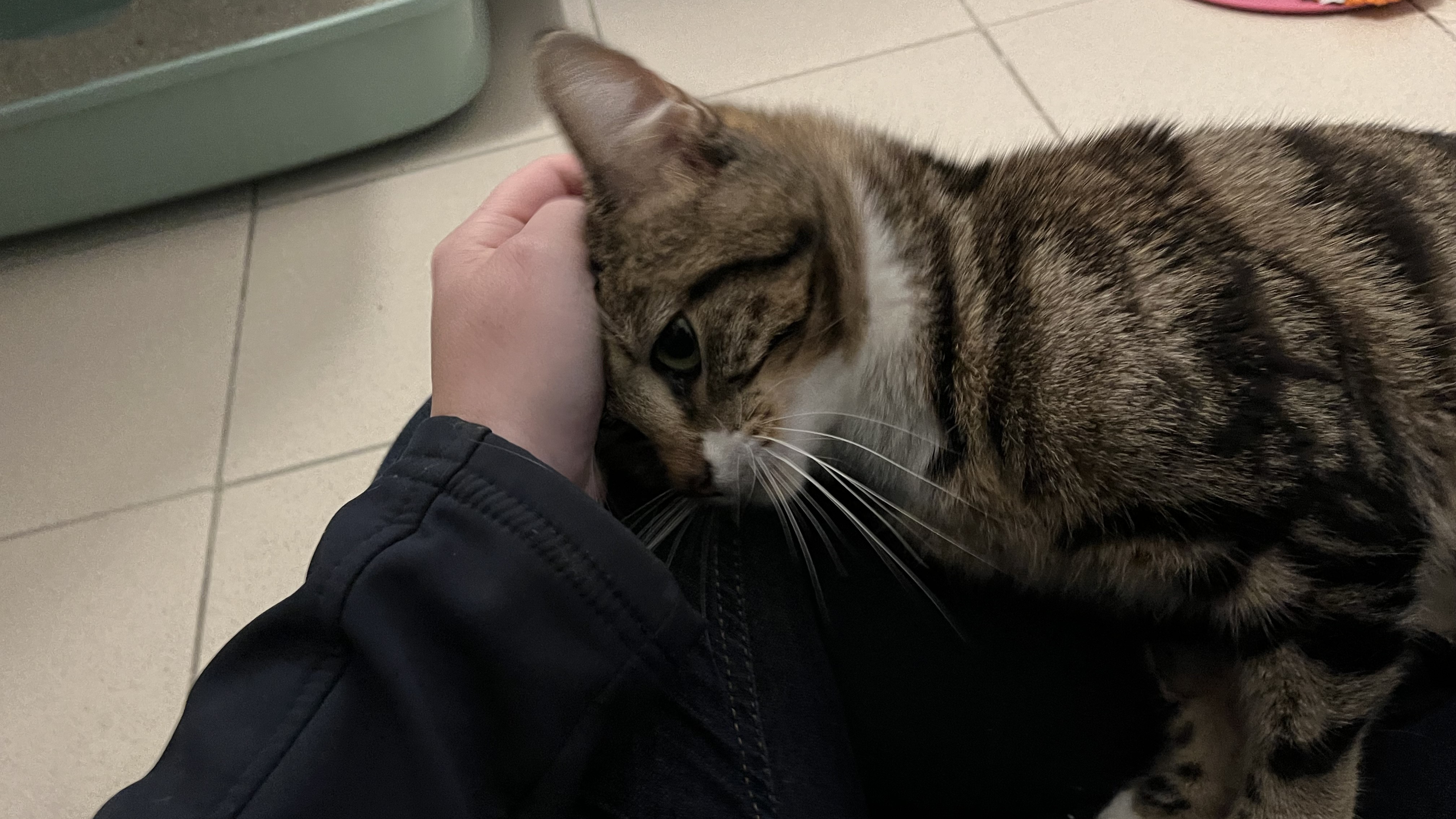 Scrappy is a very sweet boy, that once settled and gets to know you, wants nothing more than to have lots of strokes and ear rubs. He has a great purr on him too. Once he has his confidence he loves to rub all up against your legs and offered hands, climbing all over your lap to get even closer to you, demanding all the ear strokes. Scrappy is looking for a loving but patient new home who is willing to let him settle into his new surroundings to allow him to show his sweet and affectionate personality.