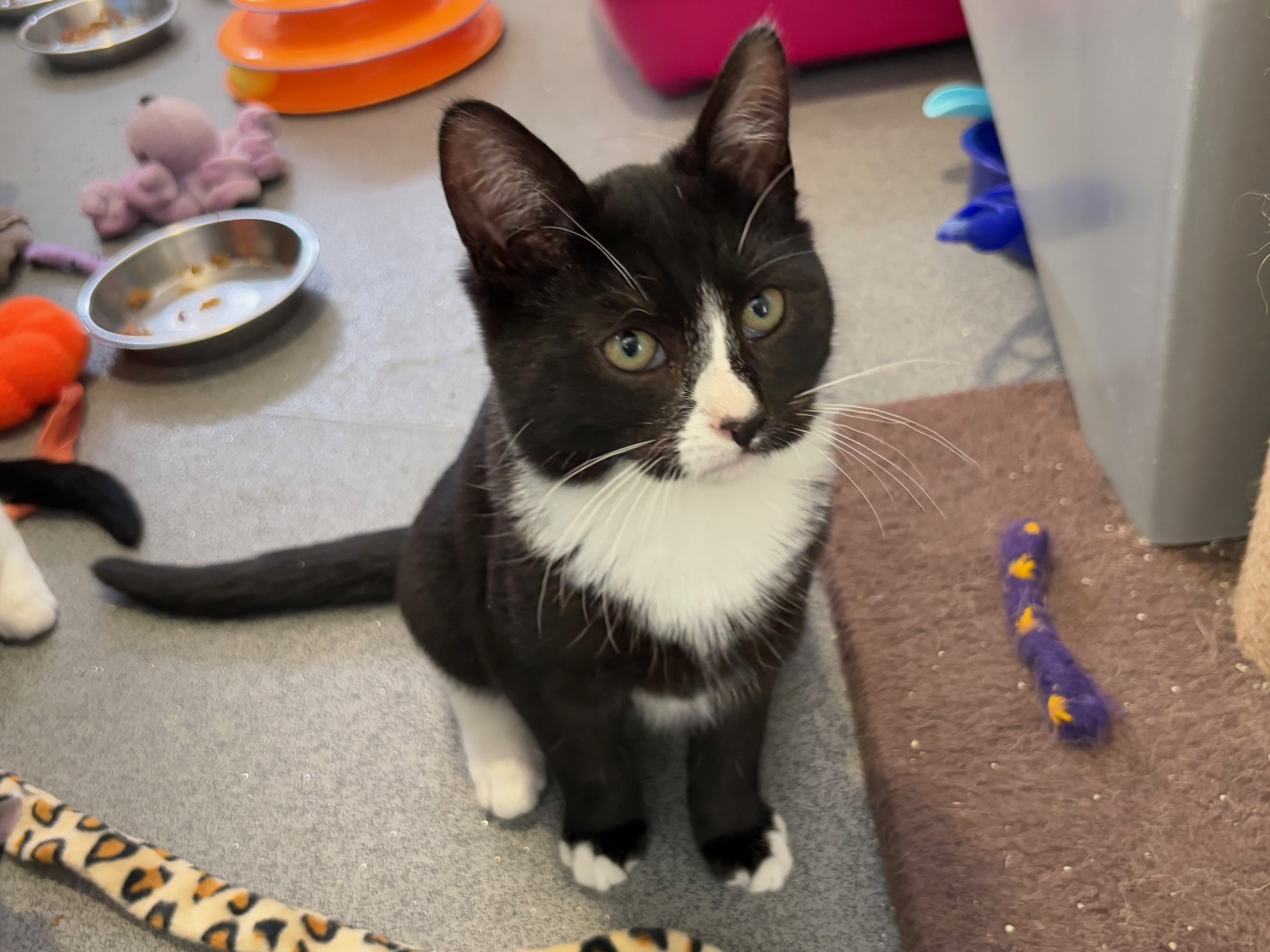Seymour is a wonderful lad bursting to show his love to everyone he meets! He is a sweet purry boy and greets you with his cute little meow. He is a typical kitten and has oodles of energy, he will be endless entertainment with his playful and cheeky spirit!