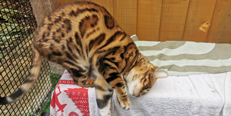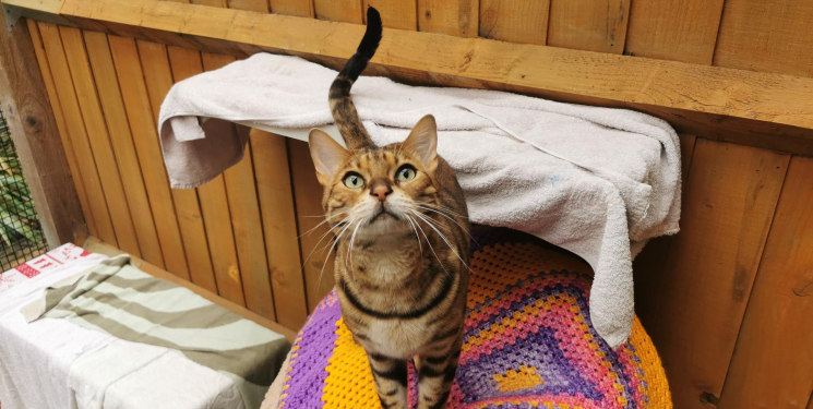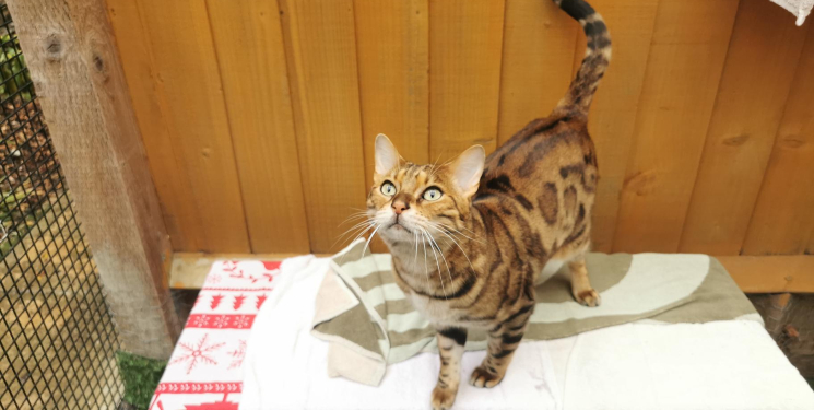 Simba is a typical chatty Bengal that loves to explore the outside world. He is an affectionate chap that will head bump your hand for more cheek rubs and show you his tail shimmy's to say he is excited to meet you.