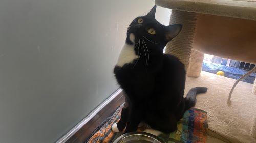 Sylvester has a fun-loving side too; he’s always ready for a play session and enjoys chasing toys and exploring his surroundings. After playtime, you’ll most likely find him curled up in a cosy bed, one of his absolute favourite places to relax. Add a few tasty treats into the mix, and you’ll have one very happy cat!