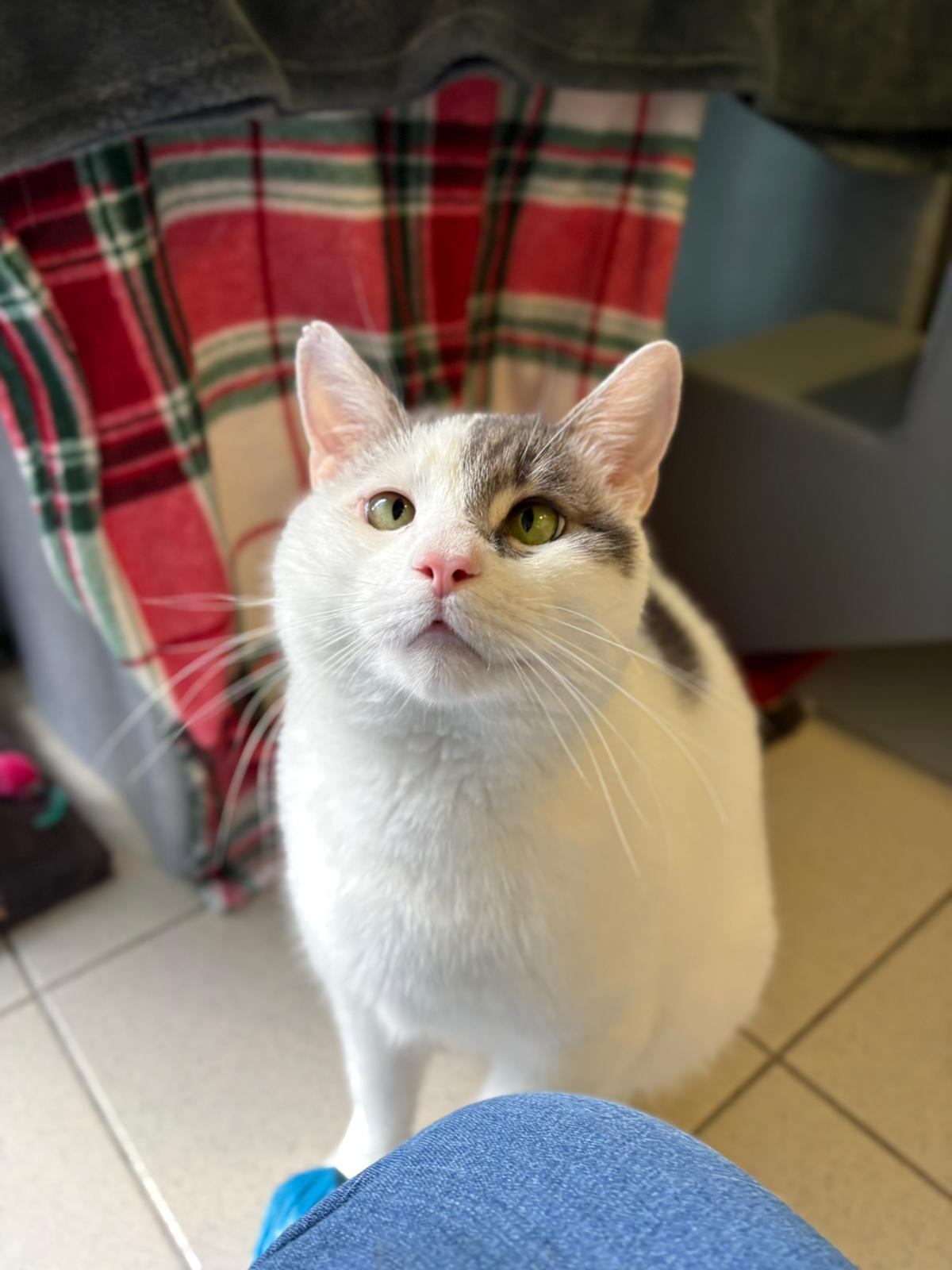 This lad is an affectionate cuddle bug who is looking for a family to call his own. He has lots of love to give and enjoys lots of head and chin rubs as he cosies up on a warm lap.
