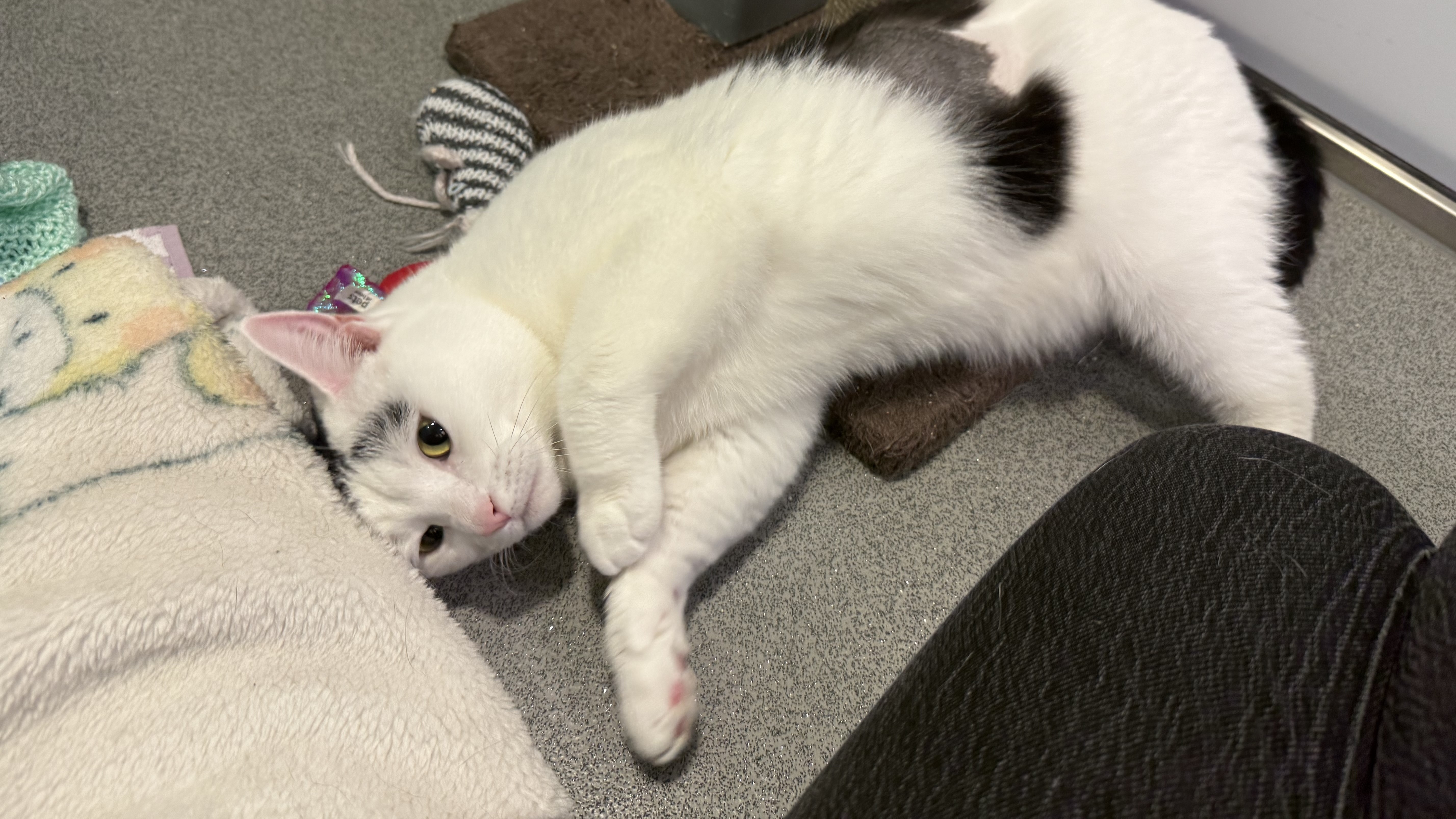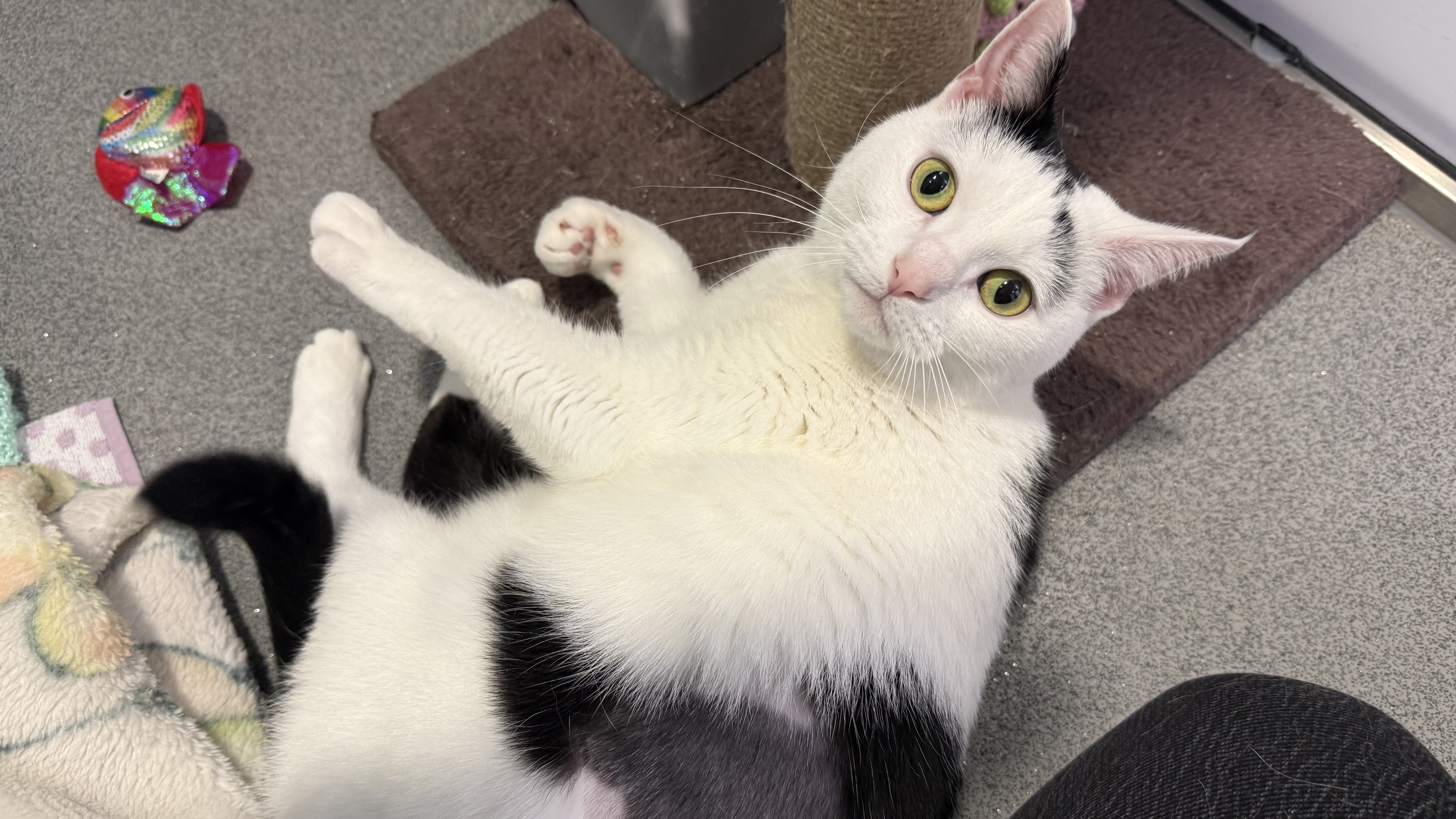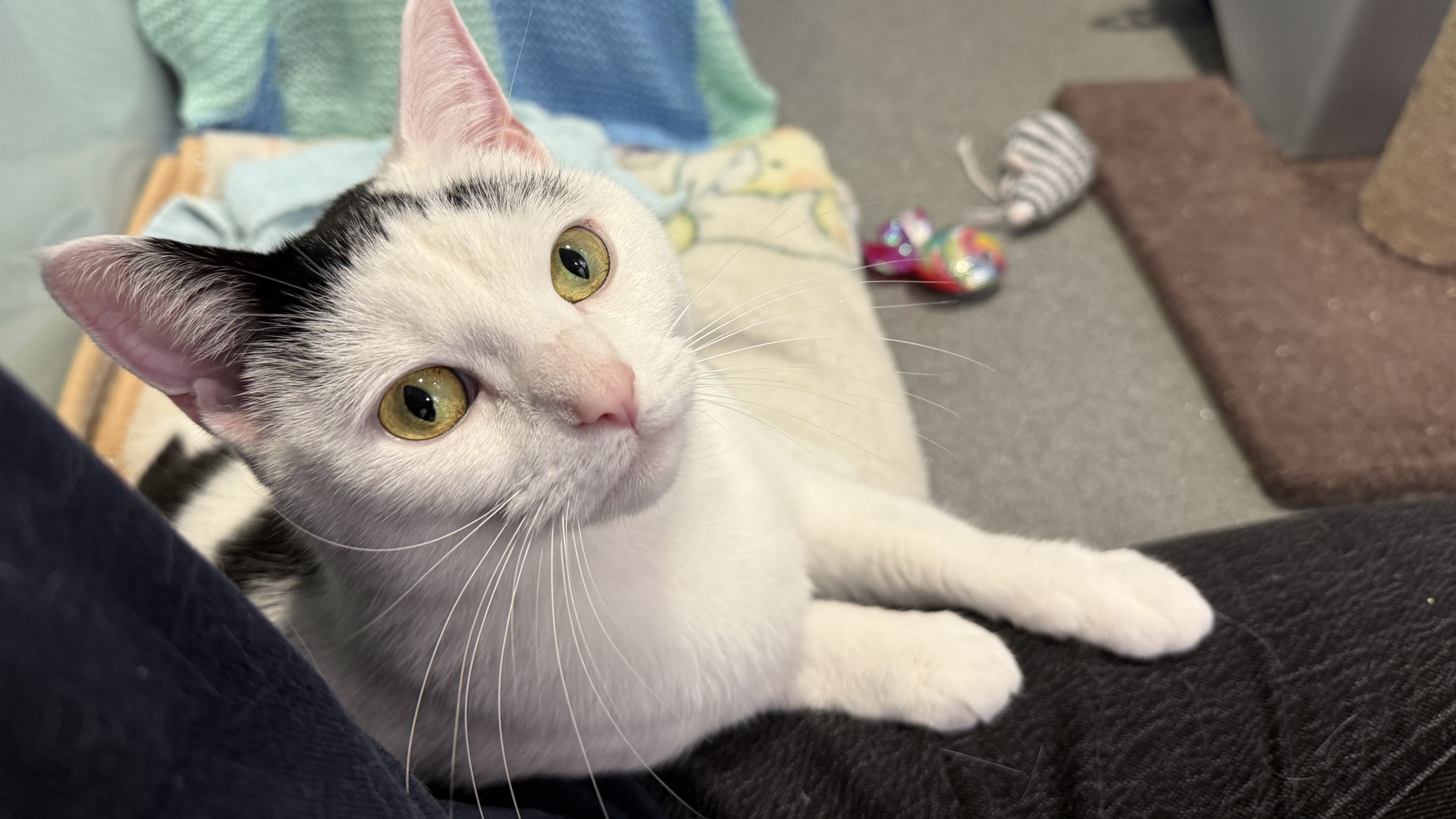 Tokyo is the sweetest, smoochiest girl in the world! She loves a fuss and will be purring away while giving you the biggest, bestest head bumps. She is also a lively girl and loves to play! Her favourites are her string toy, she'll go crazy chasing after it! You need this lovely girl in your life!