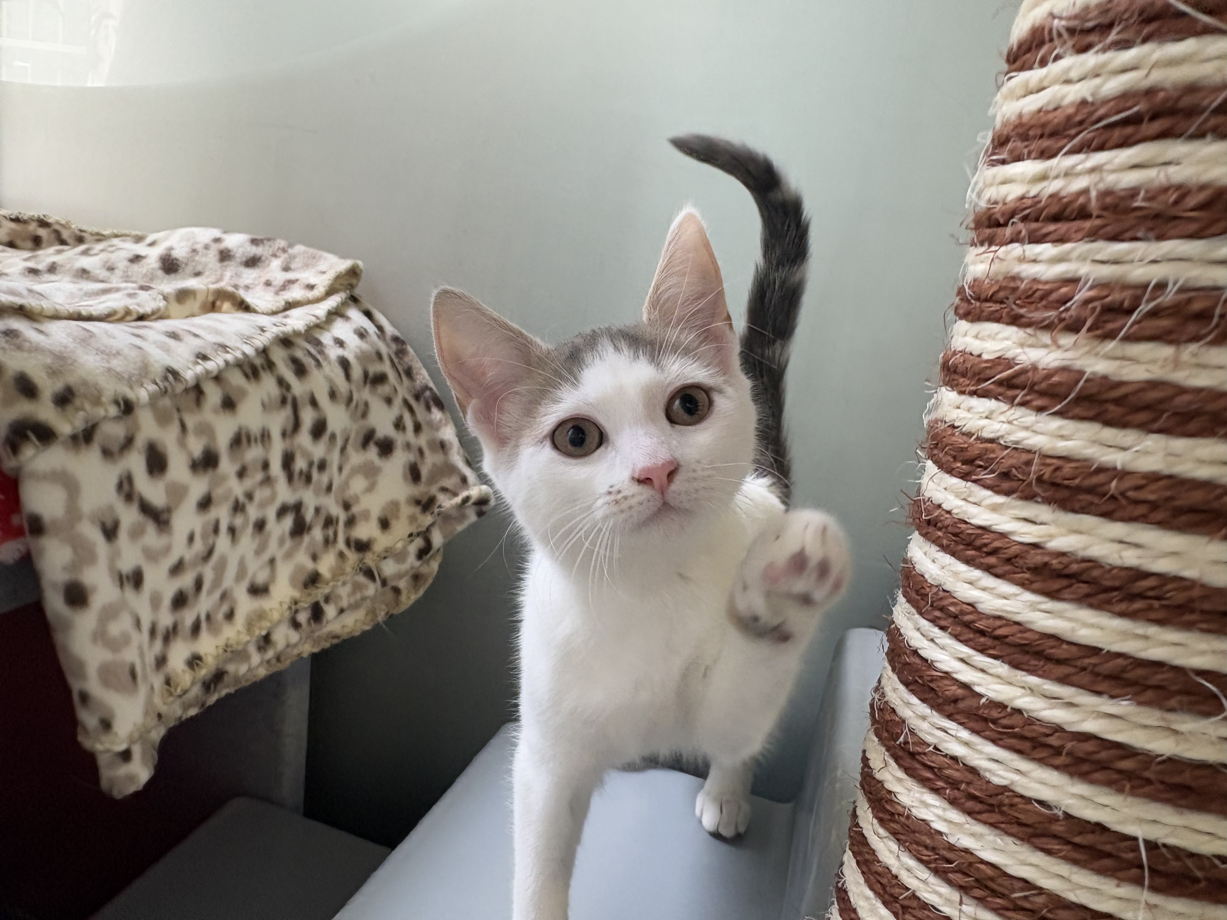 Terrific Tuna is a bouncy and energetic little kitten, looking for a family to call her own.
