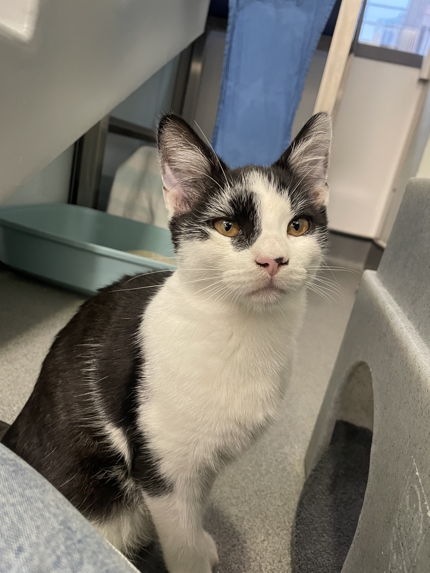 Whiskers adores company and will greet all visitors with lots of head bumps and meows.