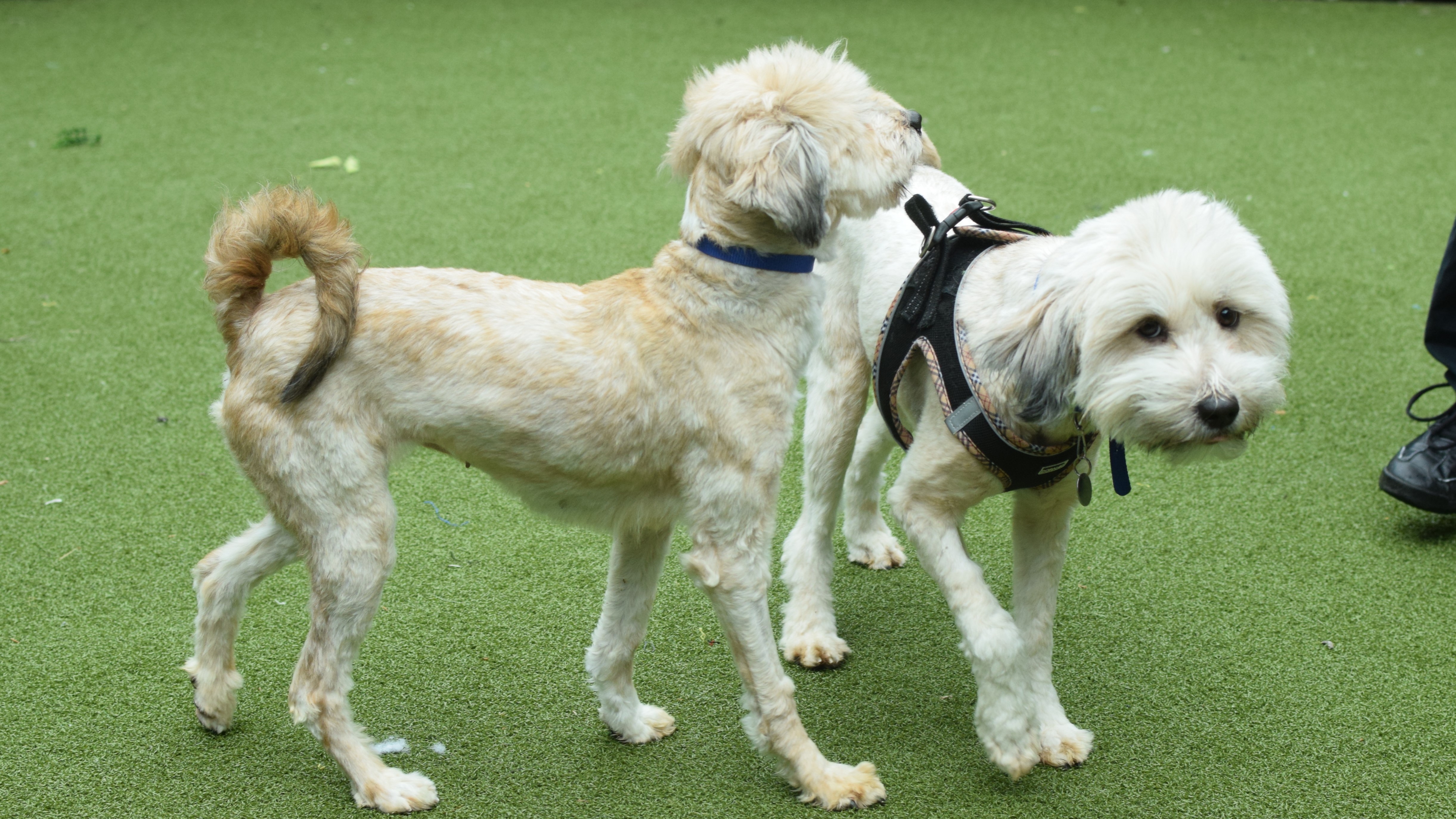 Aggie & Belle have very little experience with the outside world and with gentle and gradual exposure with her humans here at Battersea, they have both has shown to gain some confidence with their new surroundings and experiences. They are looking for a quiet home with a garden in a quiet location so that they can continue to build confidence out on their walks. Aggie & Belle have had some additional support from her team onsite, to help be familiar with walking equipment as they have little experience with this.