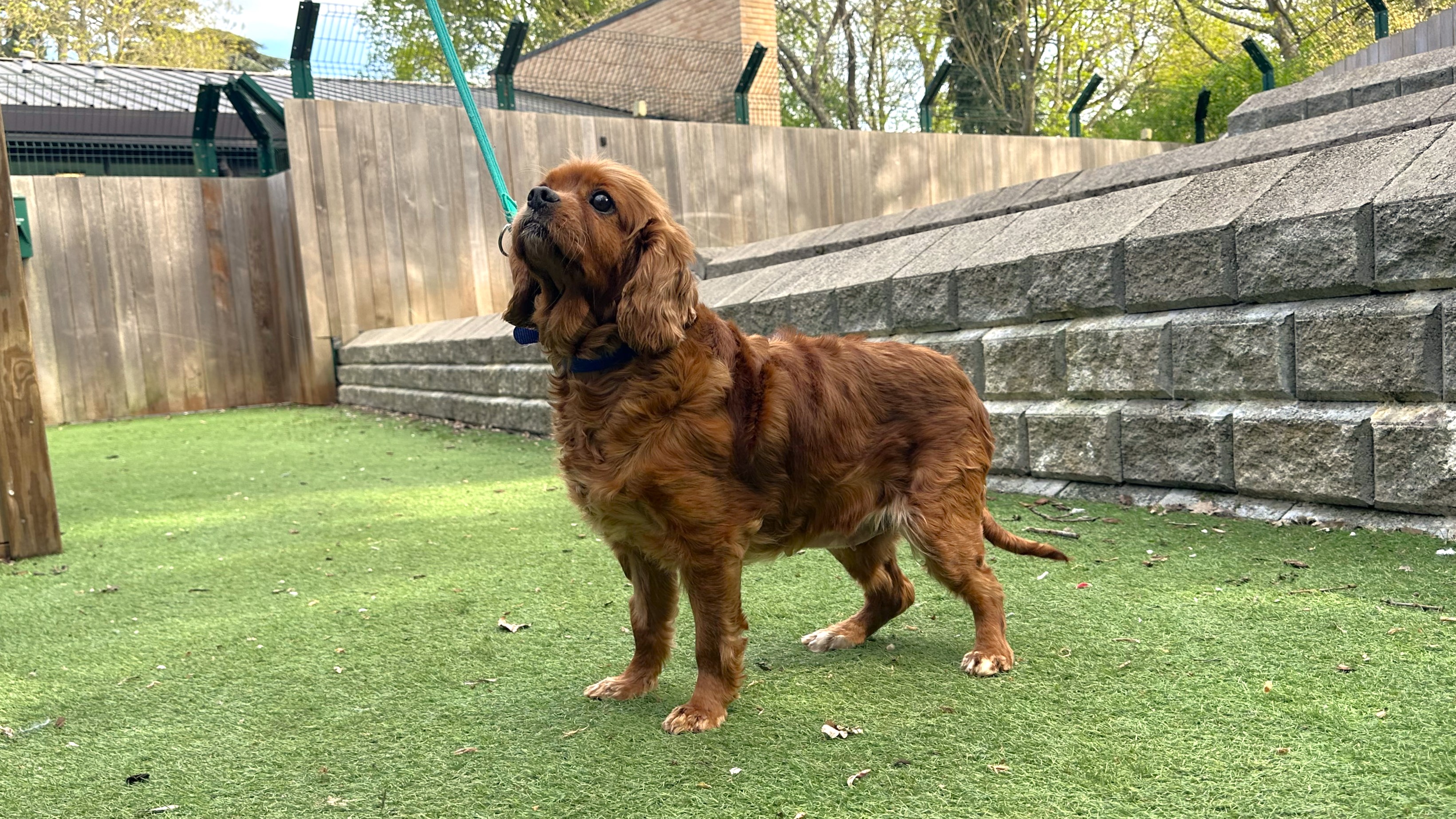 Bagel is a nervous and gentle Cavalier King Charles Spaniel. She is based at Battersea Old Windsor.
