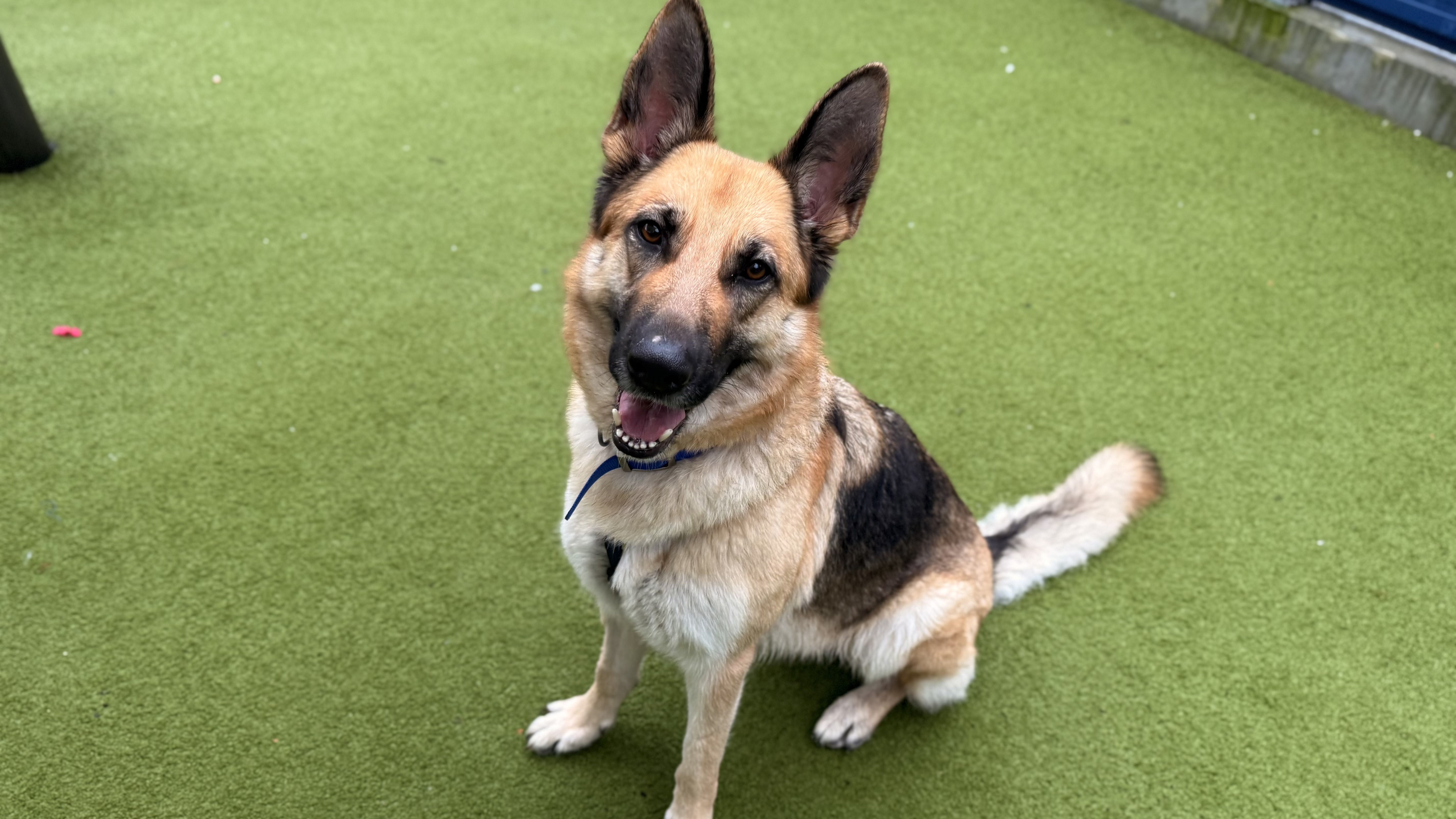 She is a lovely German Shepherd who shows some strong breed traits and can be reactive to both people and dogs alike. However she is a friendly girl with an affectionate nature and loves her known people, wanting to be with them and loving a good fuss!