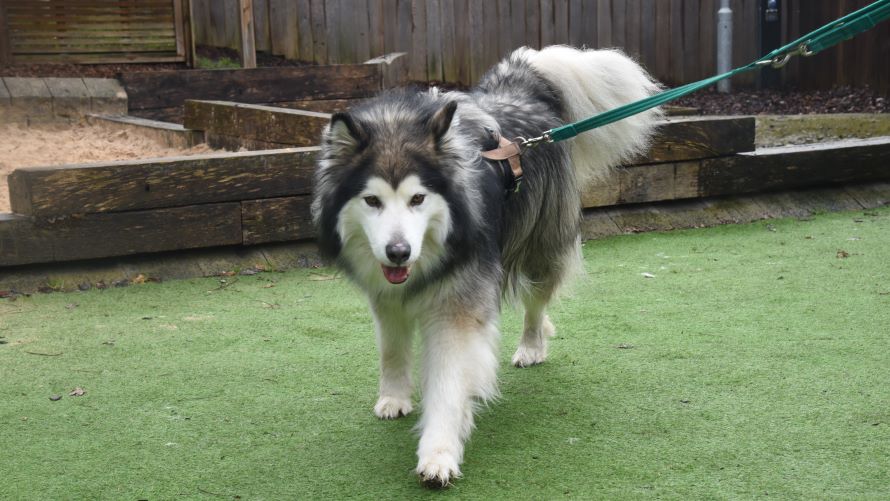 Bear is a large boy weighing in at 38kg with a lot of fluff, he does walk very nicely on lead enjoying a potter around our centre here. Bear prefers the company of people rather then dogs, he is social but likes a calm walking friend rather than a play mate. Due to this he will need to kept on lead when in public and will need his own garden where he can be off lead and sun bathe when in the sunnier months.