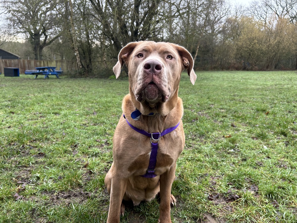 Betty is a larger lady who despite her size, is still a juvenile dog in terms of her behaviours. She loves people and does like to play with other dogs, but can vocal in her play and too much for some dogs. This lovely girl will benefit from owners who understand the mastiff breed and their breed traits and who can physically manage a larger dog and the socialising that comes with them. Betty loves her food, which is helpful for her training! She can understandably be uncomfortable around people if they touch her or interact her while she is eating, so her new owners will need to be sympathetic and savvy to this, ensuring she has designated quiet areas for meal times or if she has a chew.