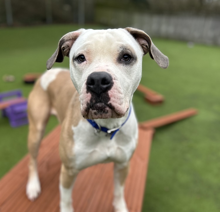 Meet Big Coco, an absolutely stunning American Bulldog lady who sadly came to be at Battersea after being picked up as a stray. Coco really enjoys playing with her toys and also LOVES her food! She has some good basic obedience already in place and due to her love of food, has the potential to learn so much more.