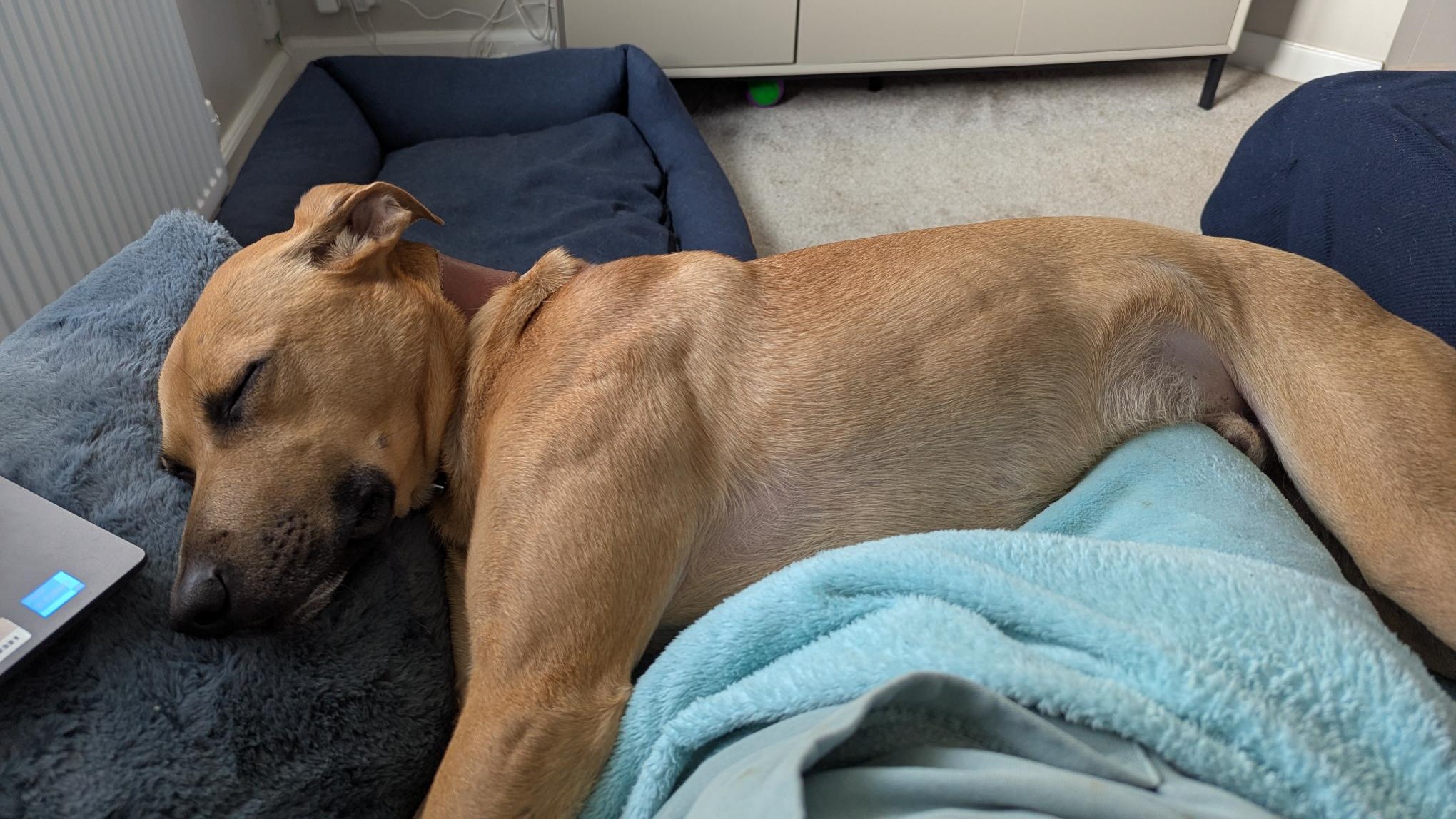 Billy originally came to us with his siblings from another rescue. He has been rehomed previously but has sadly ended up in our care again. He was described by previous owners as playful, affectionate, and full of energy – sometimes perhaps a little too much, especially around other dogs.