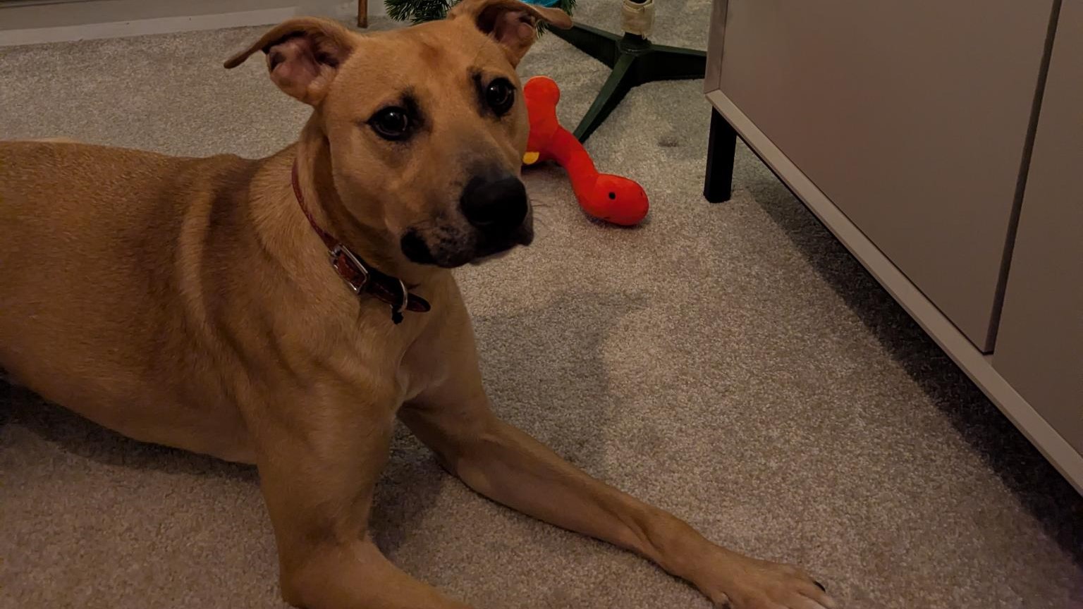 Back with us, Billy has been a fun and loving personality. He’s still learning how to interact appropriately as he missed out on some early socialisation. His play can be mouthy and over-the-top, but he’s making great progress with training and is eager to learn. He’ll need owners who are prepared to continue that work and understand he’s a bit of a project – but a very rewarding one.