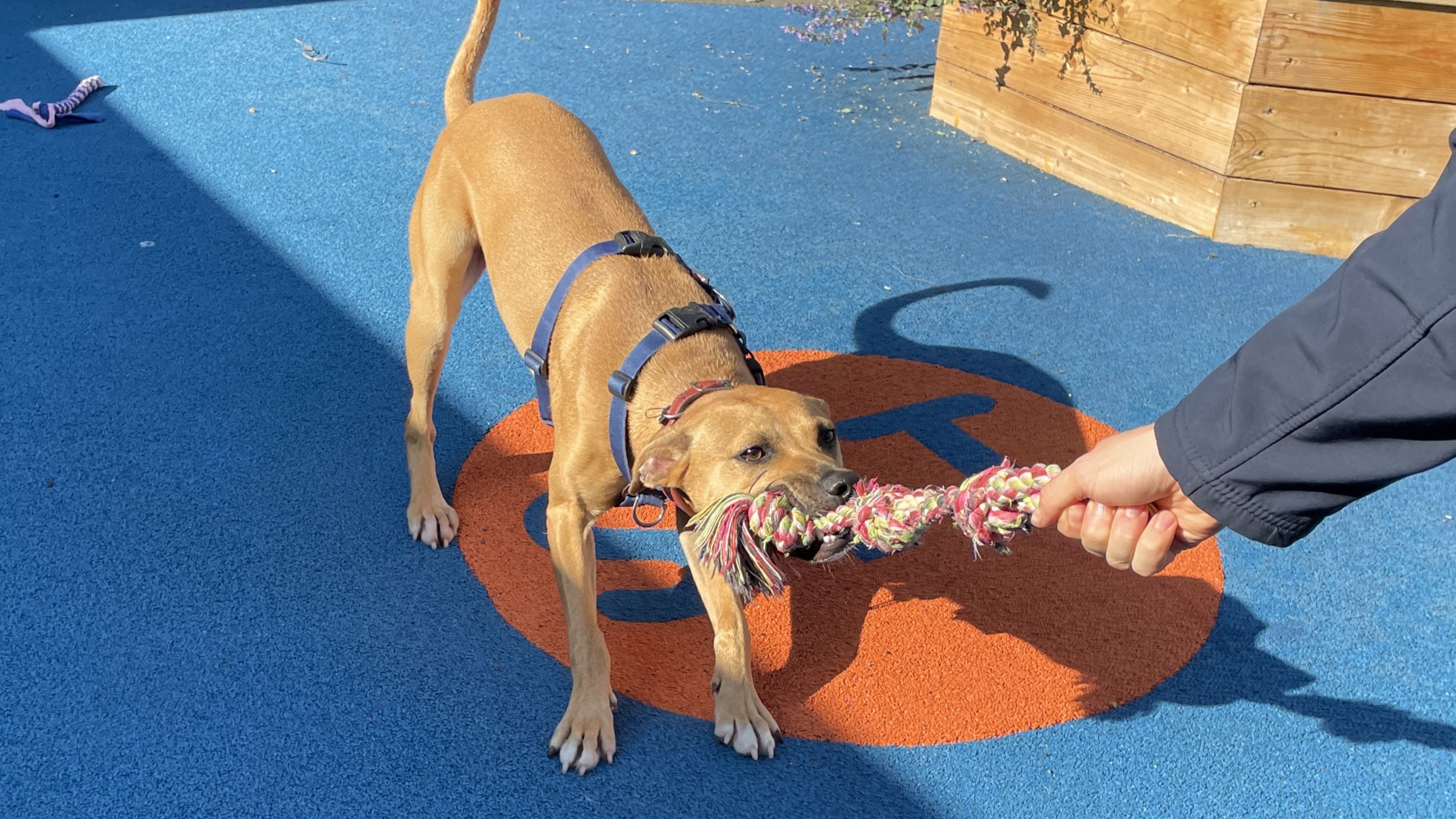 Back with us, Billy has been a fun and loving personality. He’s still learning how to interact appropriately, as he missed out on some early socialisation. His play can be mouthy and over-the-top, but he’s making great progress with training and is eager to learn. He’ll need owners who are prepared to continue that work and understand he’s a bit of a project – but a very rewarding one.