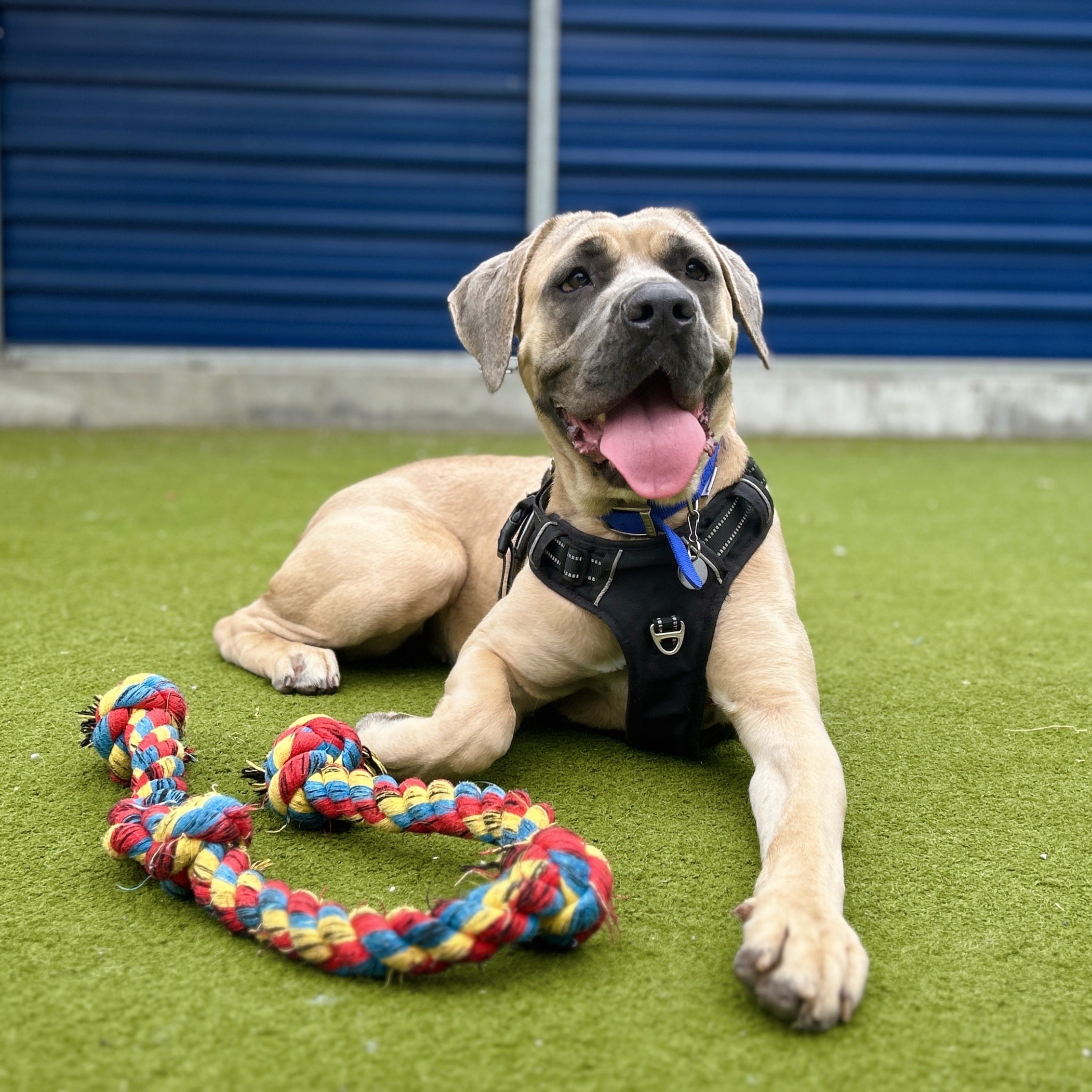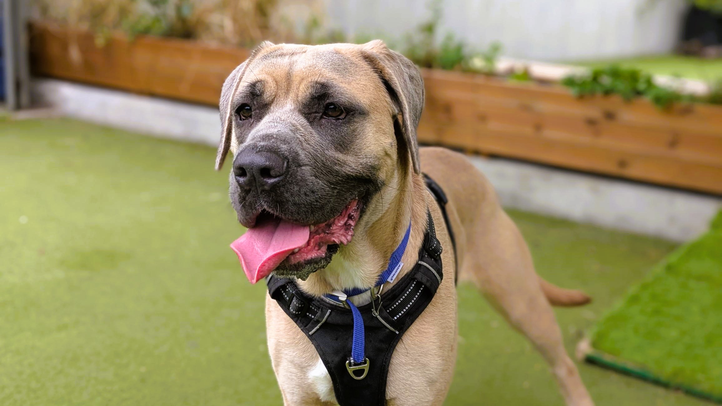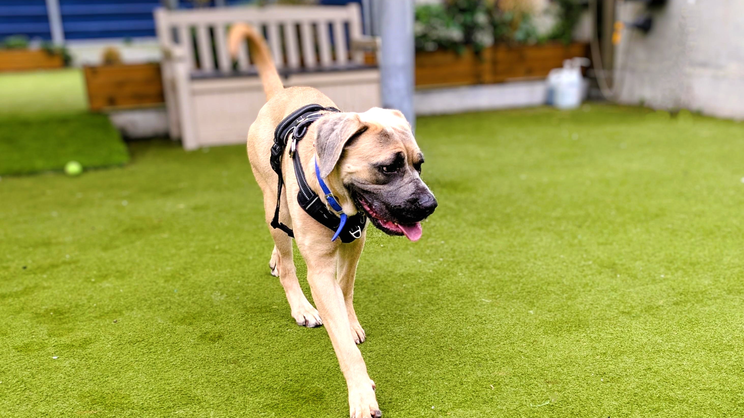She’s super social, adores playtime, and is especially excited around other dogs—though she’s still learning how to keep her enthusiasm under control. Bounce thrives on training, is food and toy motivated, and will happily show off her sits and waits for a treat. She can be vocal and strong on lead when she sees other dogs, so she needs confident owners who are happy to continue her training. Bounce would suit an experienced, active home with teens who can handle her bouncy nature.