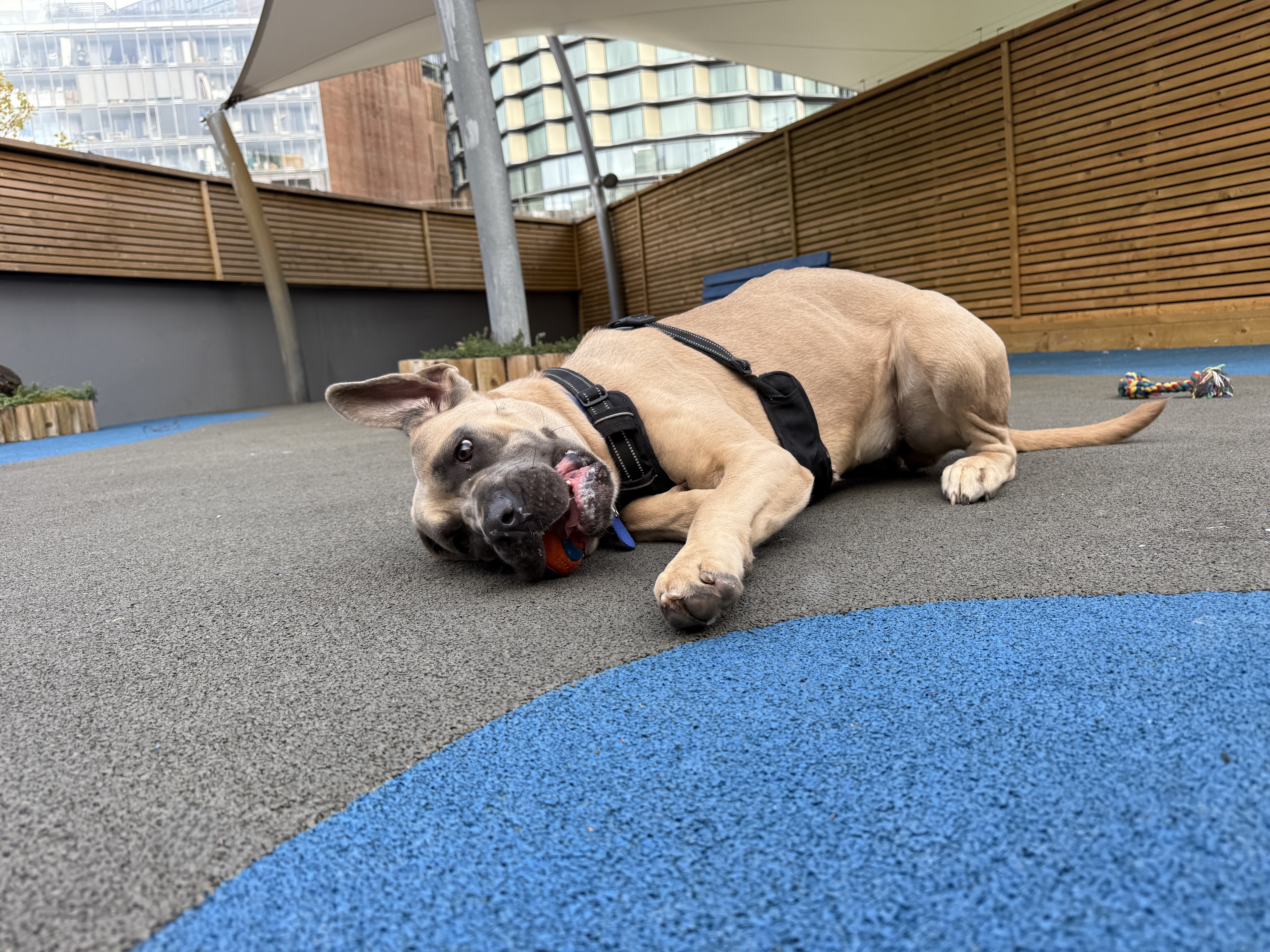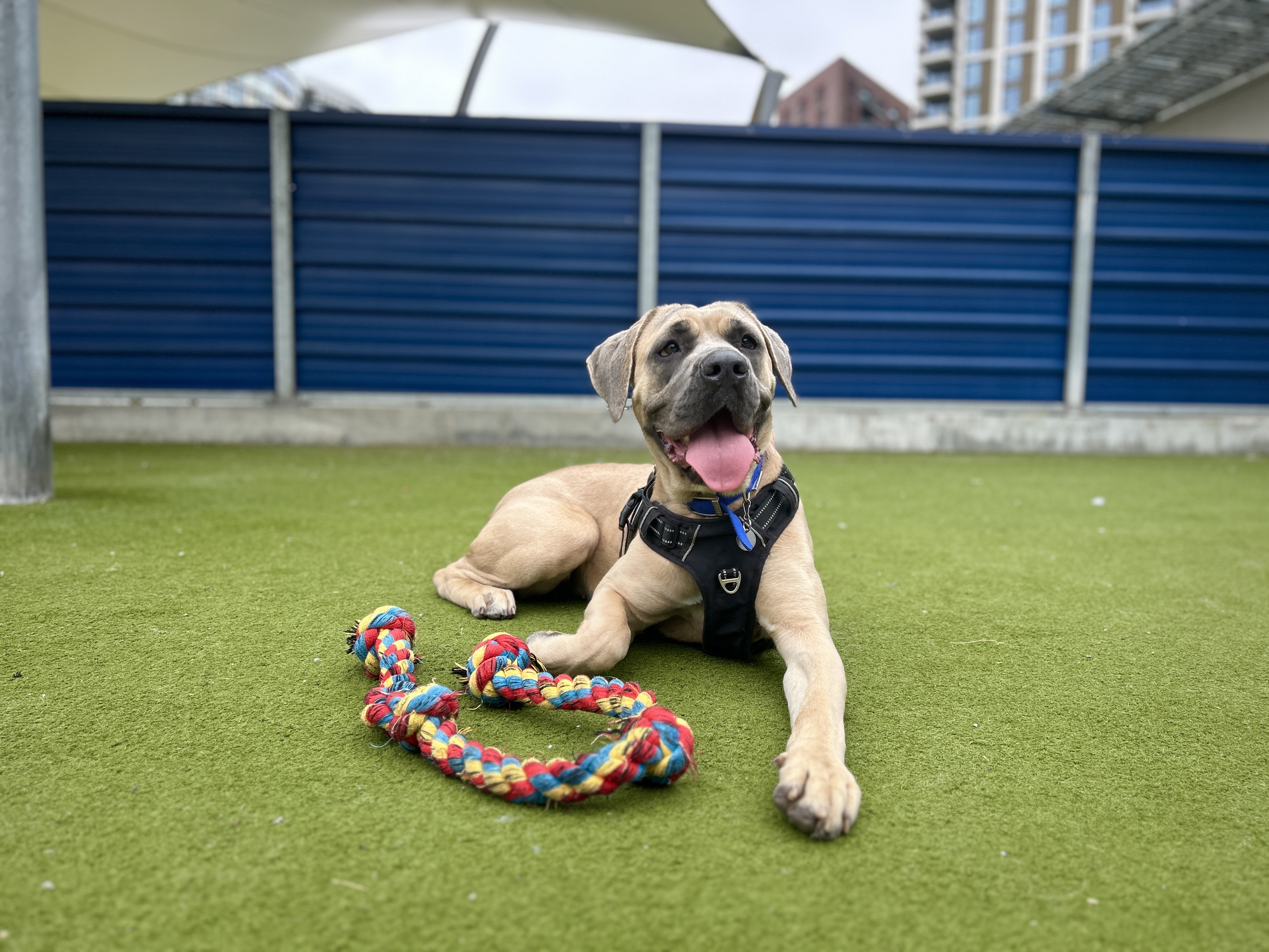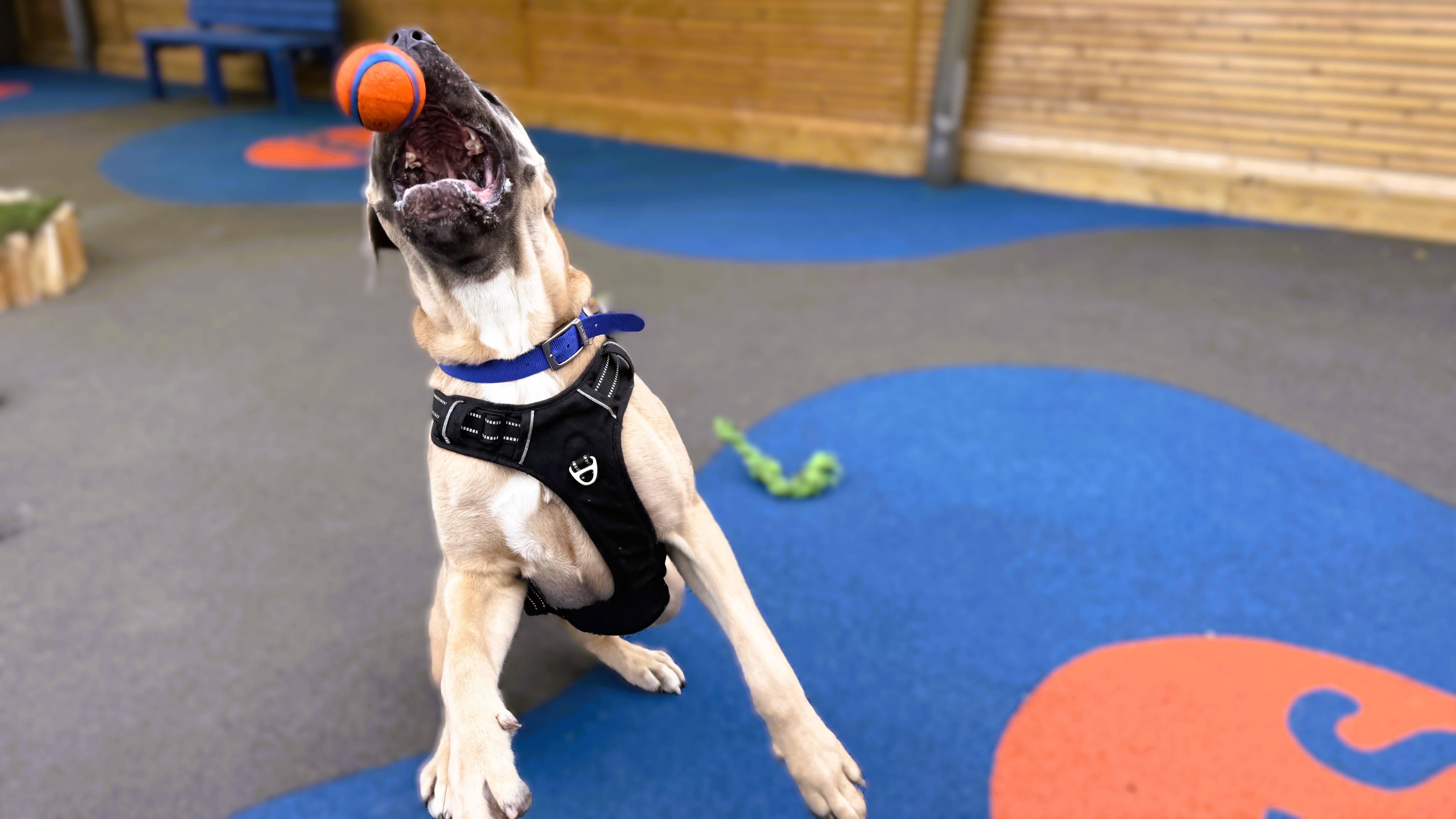 She’s super social, adores playtime, and is especially excited around other dogs—though she’s still learning how to keep her enthusiasm under control. Bounce thrives on training, is food and toy motivated, and will happily show off her sits and waits for a treat. She can be vocal and strong on lead when she sees other dogs, so she needs confident owners who are happy to continue her training. Bounce would suit an experienced, active home with teens who can handle her bouncy nature.