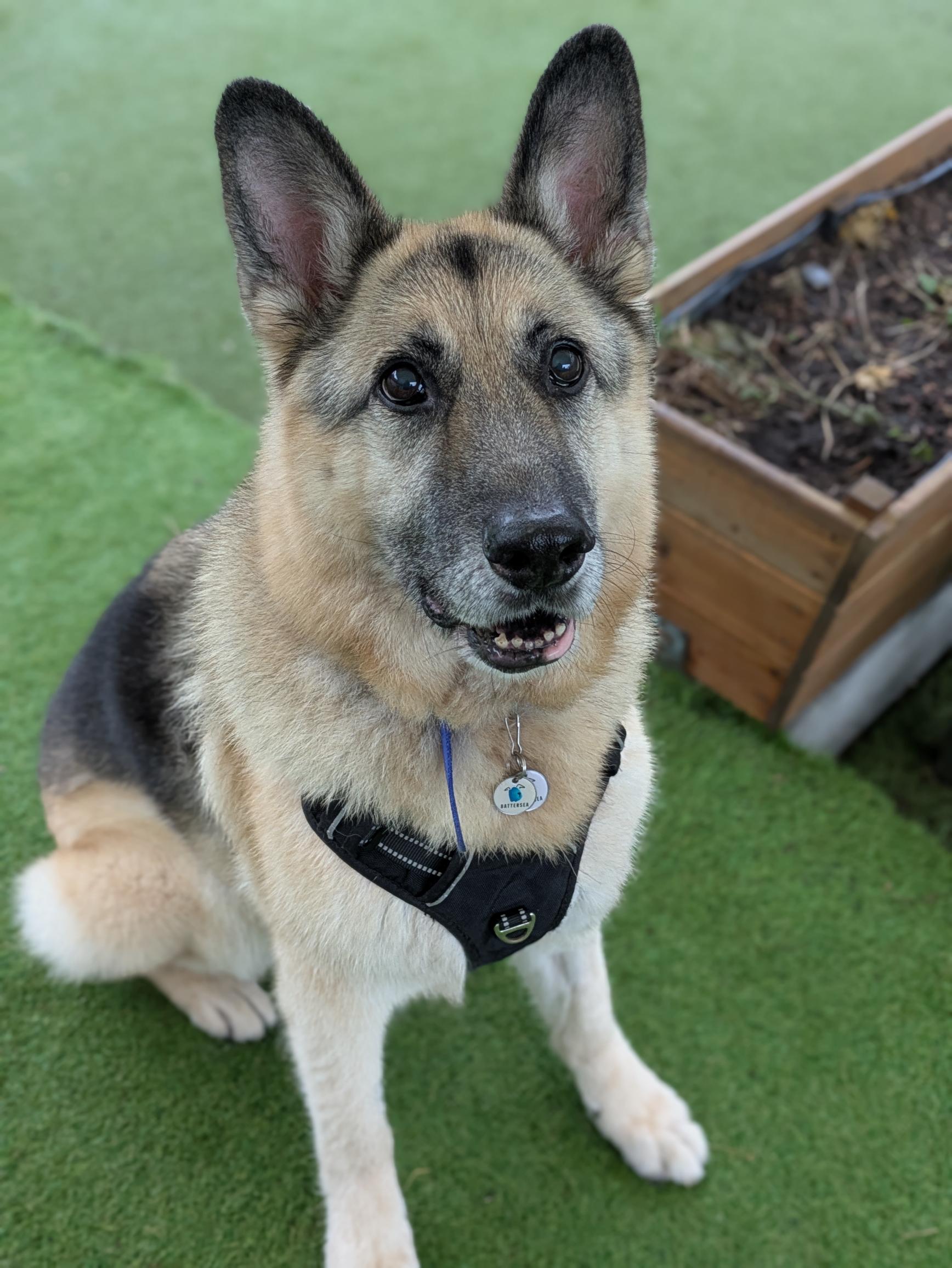 Like many Shepherds, Caesar can be a little vocal when first meeting other dogs, but this quickly settles. He greets politely once comfortable and may even invite some gentle play.