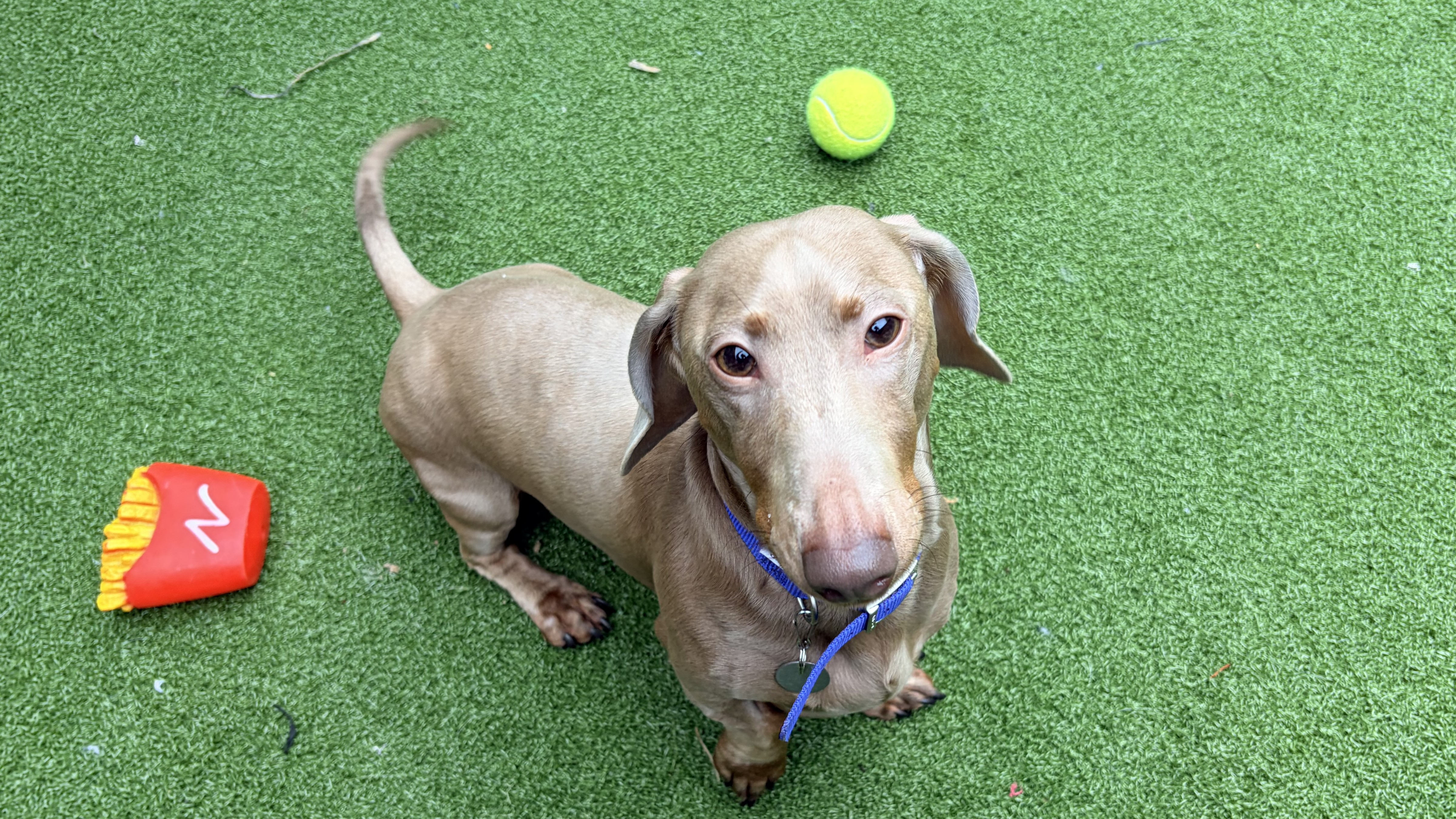 Carlito came to Battersea due to a change in his previous owners living situation. Carlito is the sweetest boy who has a glowing history from his previous home of being totally devoted to his humans and loves nothing more than burrowing into a jumper for snuggles. He is typical of his breed, loyal, energetic and playful and of course, can be a vocal boy, letting his home know when there's someone at the door. He can be a little worried when meeting new people (unless they have an ice cream he can easily steal) but warms up quickly and then it's friends forever
