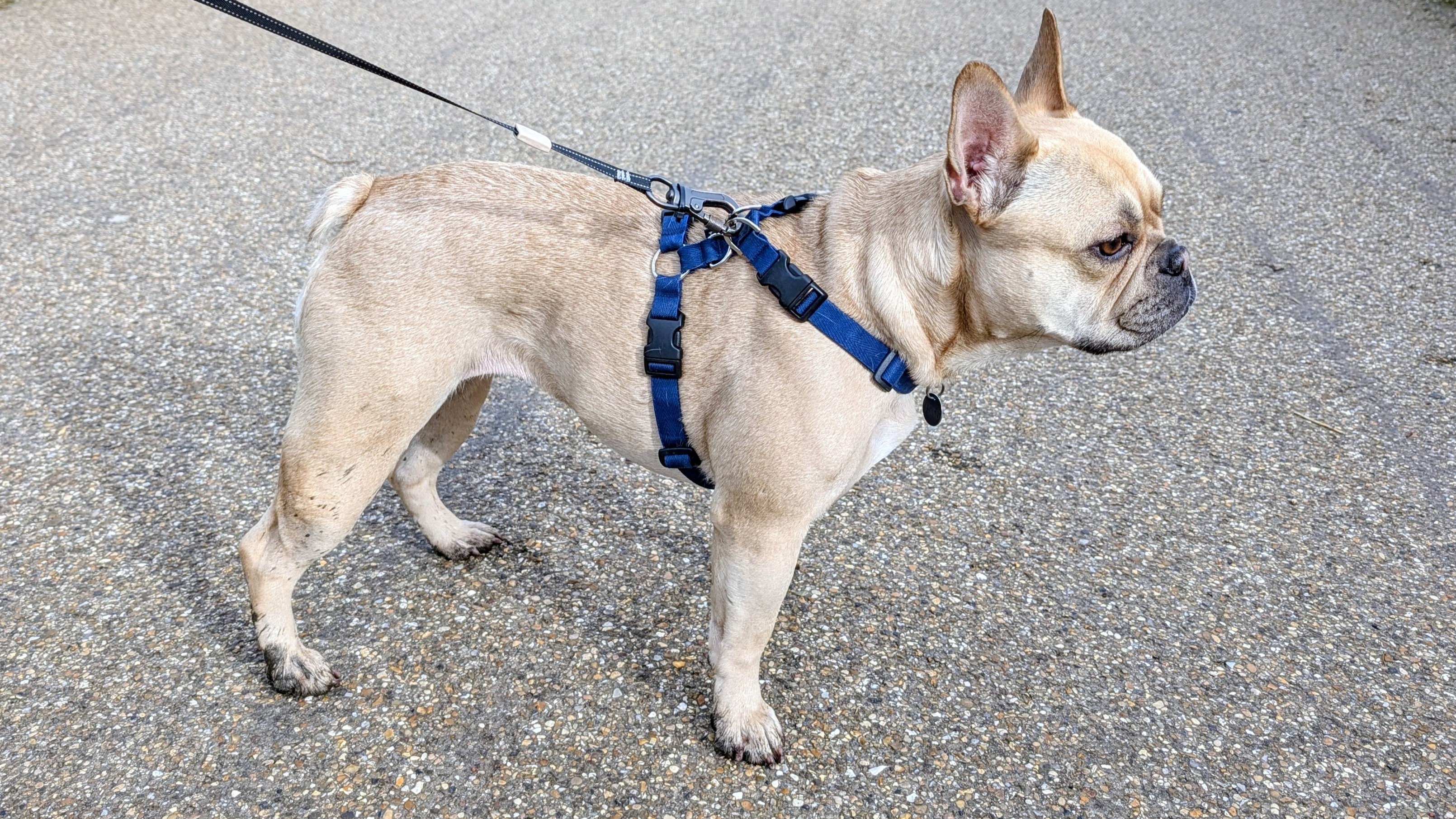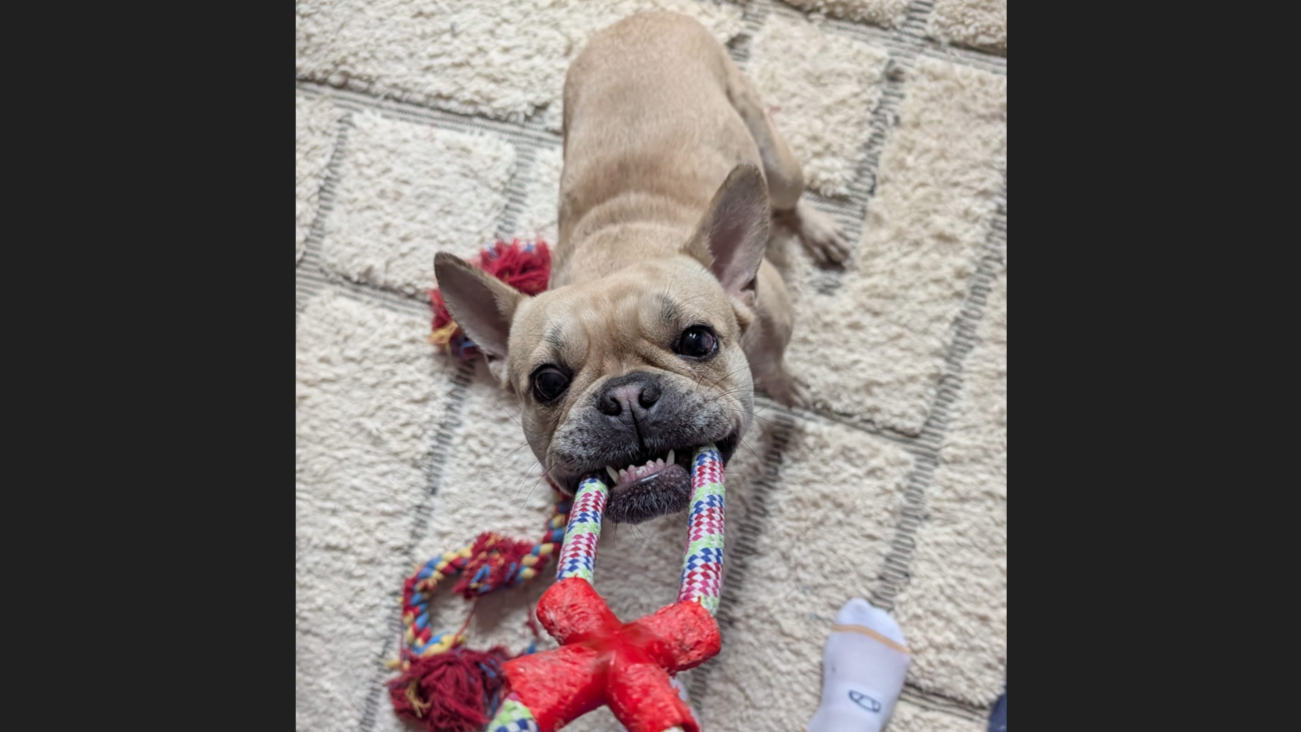 Cassie gets on well with other dogs that are of similar size and temperament, even going to a Frenchie party at one point! She would like to find a few good canine friends that she trusts and enjoys playing with.