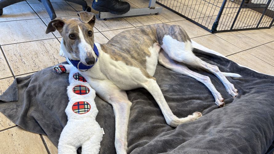 Connie is a friendly, laid back Greyhound with a calm and easy going nature. She is currently based at Battersea Old Windsor.