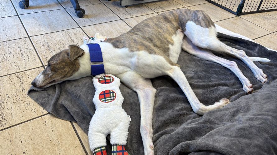 Connie walks nicely on the lead and isn’t strong. She enjoys steady walks where she can sniff and stay close by your side, she will often check in for a gentle fuss along the way. She can be sensitive to sudden or loud noises, particularly in busier environments so she would really benefit from having her own secure, private garden where she can relax and stretch her legs safely and build her confidence at her own pace.