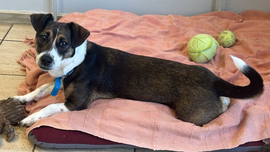 Once she trusts you, she becomes the sweetest little companion, happily soaking up fuss, offering cuddles, and showing off her bubbly personality. She especially loves her toys, soft toys are her absolute favourite and in the office, she’ll happily entertain herself, tossing them around and making everyone smile.