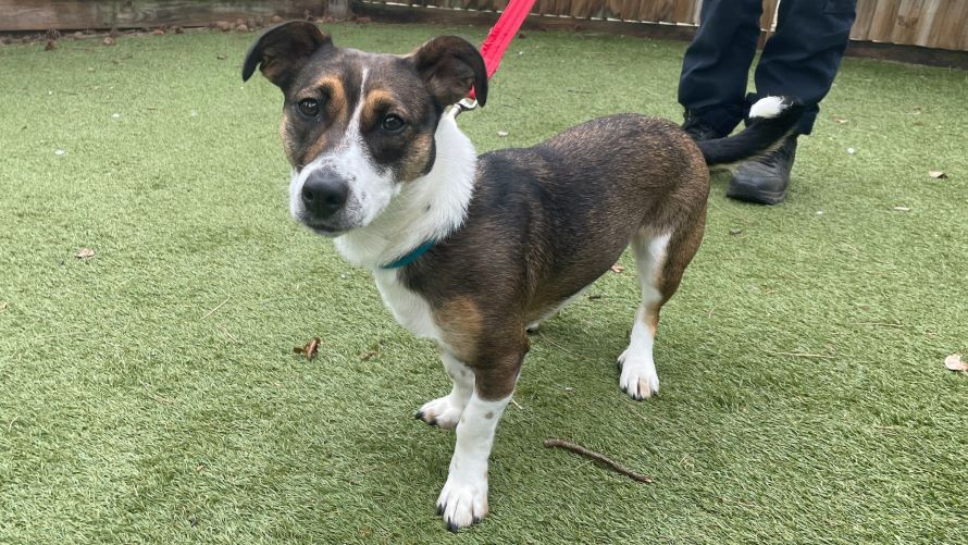 Cookie is a Jack Russell Terrier cross Staffordshire Bull Terrier with a huge heart and a gentle, affectionate nature. Although she can be worried by new people, especially when out and about, she forms deep, loving bonds with those who take the time to get to know her. She is highly food motivated, with chicken being her top favourite treat, which makes training and confidence building even more rewarding for her.