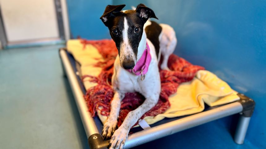 Crystal is a fun and affectionate Greyhound based at our Old Windsor site.