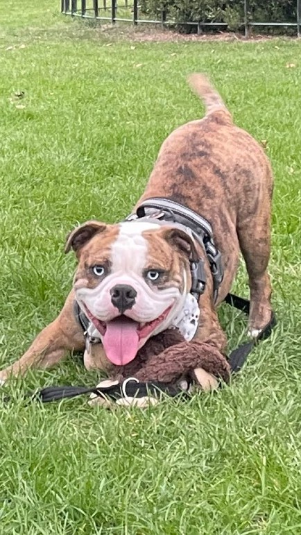 He has been on foster with two cats and may be able to live with confident, dog savvy cats following slow, careful introductions. Cyrus would suit less experienced owners, ideally with bull breed experience, willing to support his medical care and ongoing socialisation with other furry friends. He could potentially live with another dog with a similar bully playstyle to him.