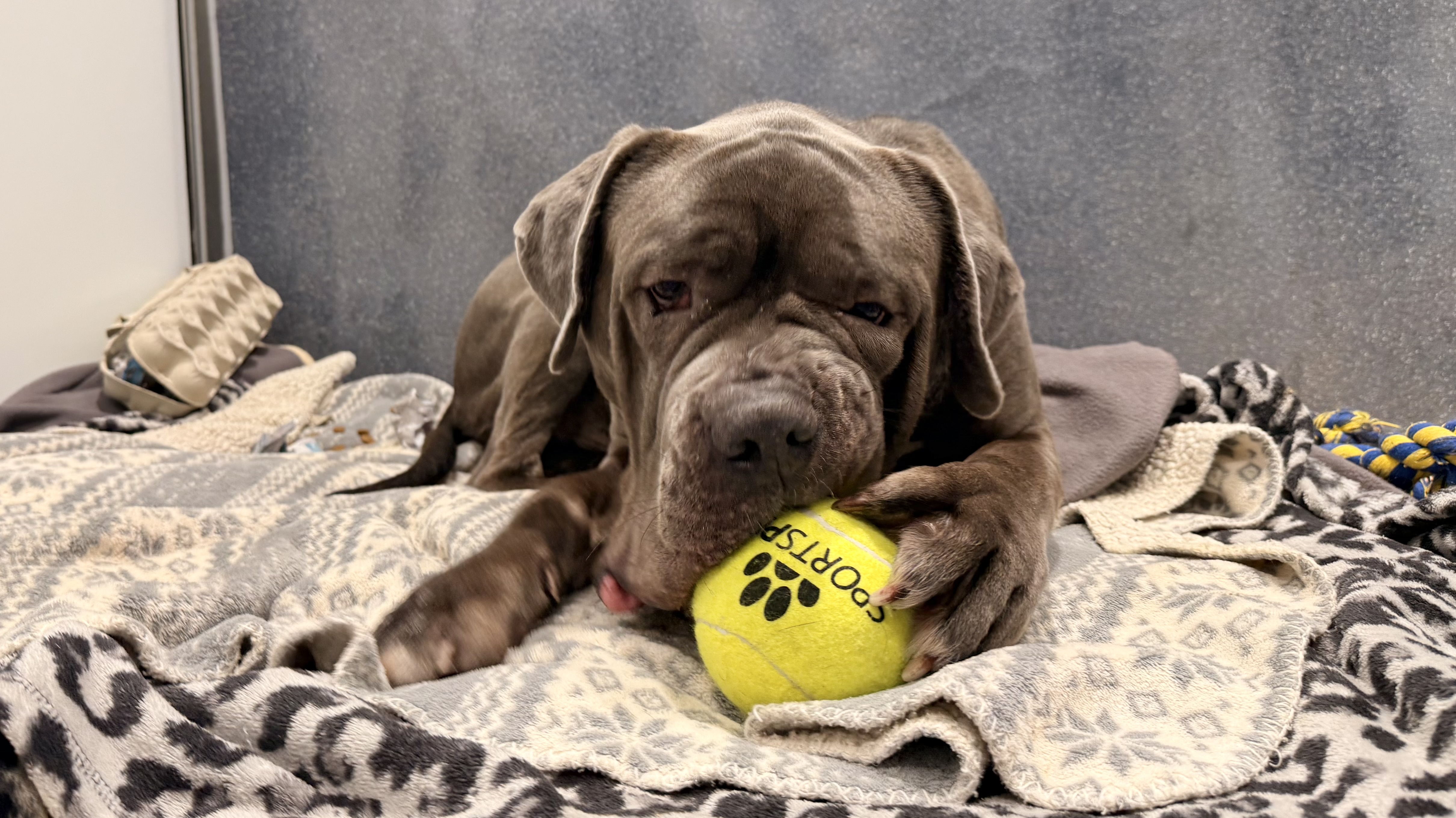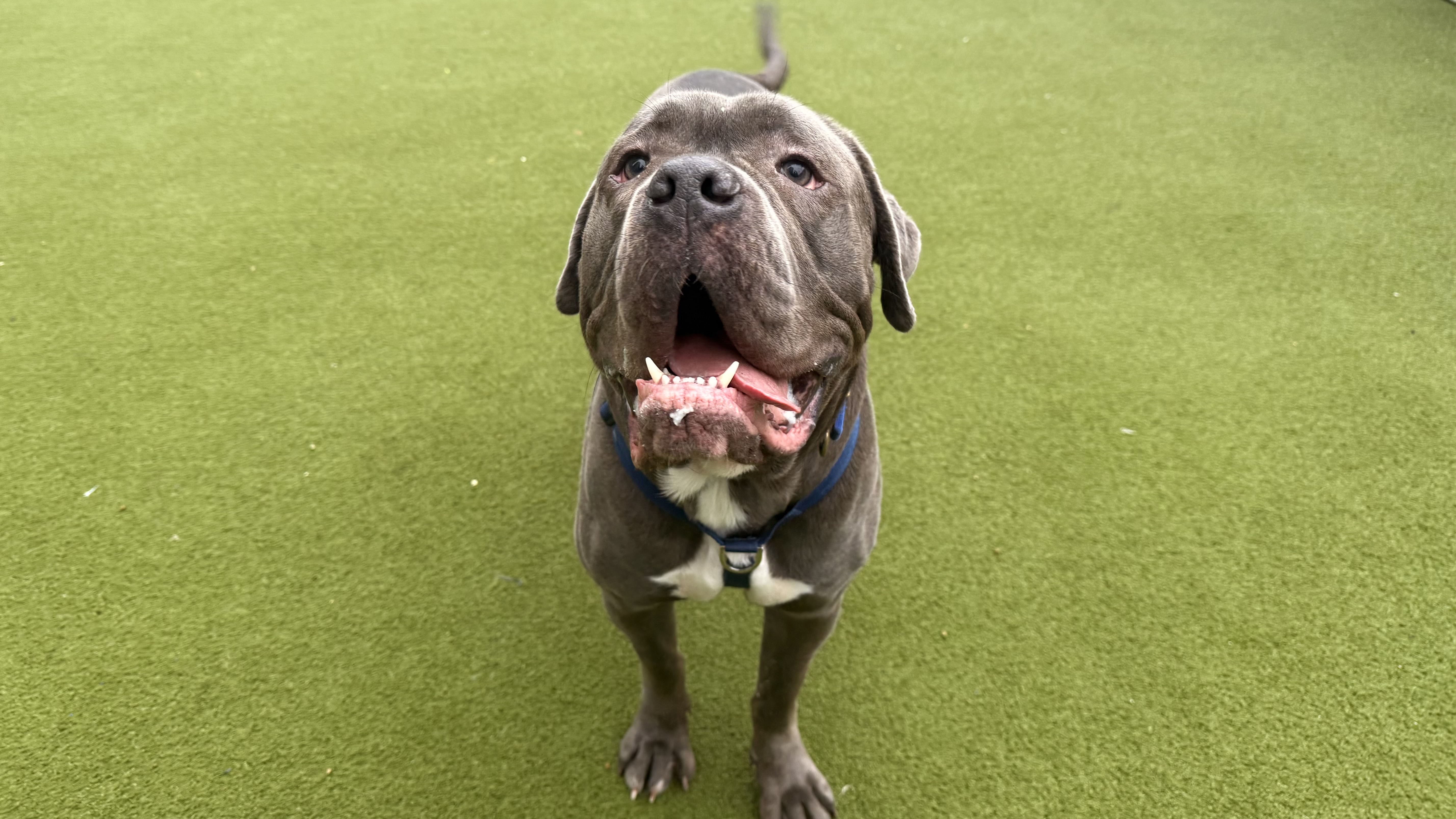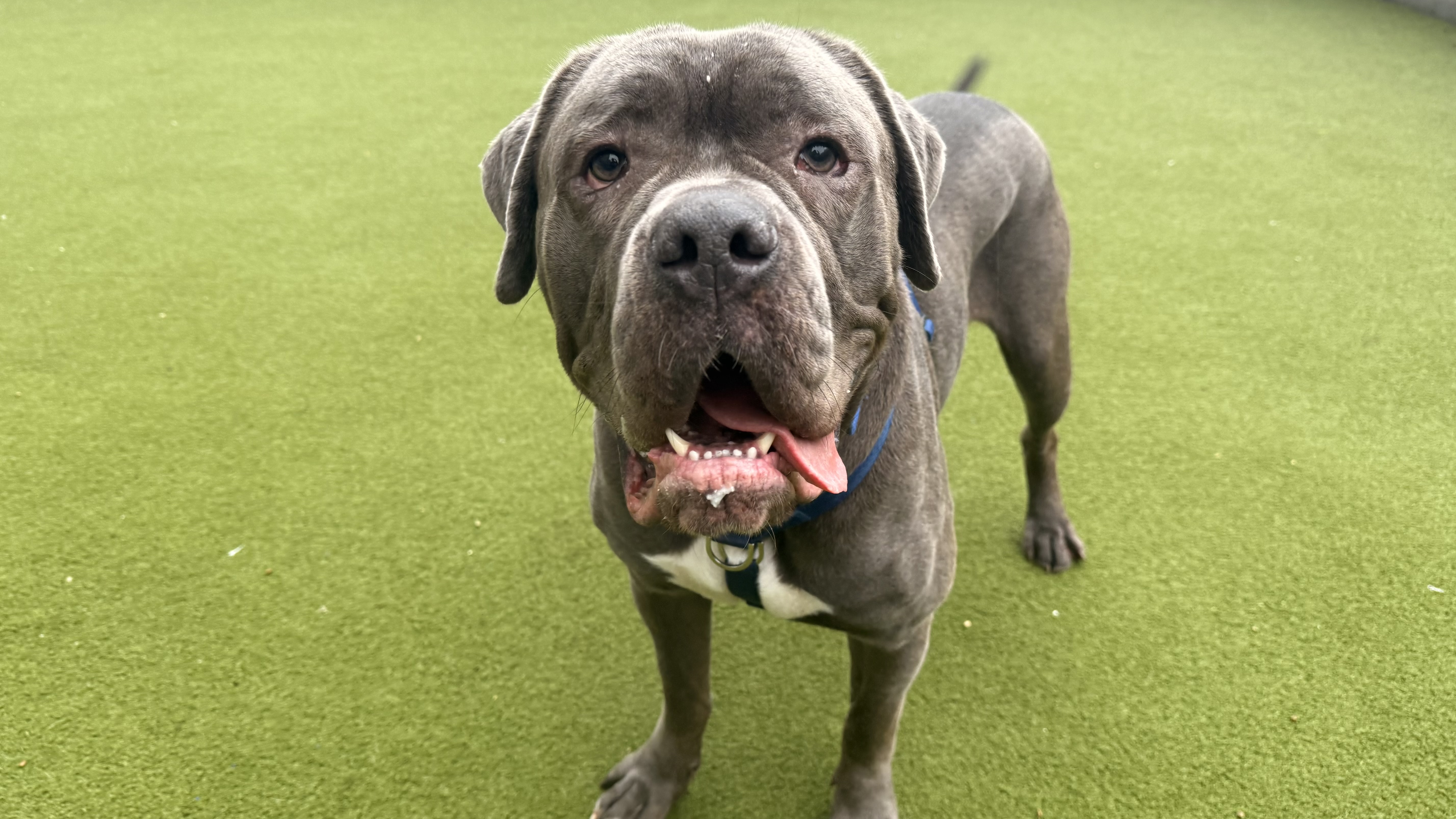As a young Cane Corso, Dave can be bouncy and sometimes forget his manners, but he’s making great progress with consistent training and is learning to keep all four paws on the floor. While he can be a little over-enthusiastic around other dogs, he is playful and enjoys socialising, and will continue to benefit from positive socialisation to refine his dog-to-dog manners.