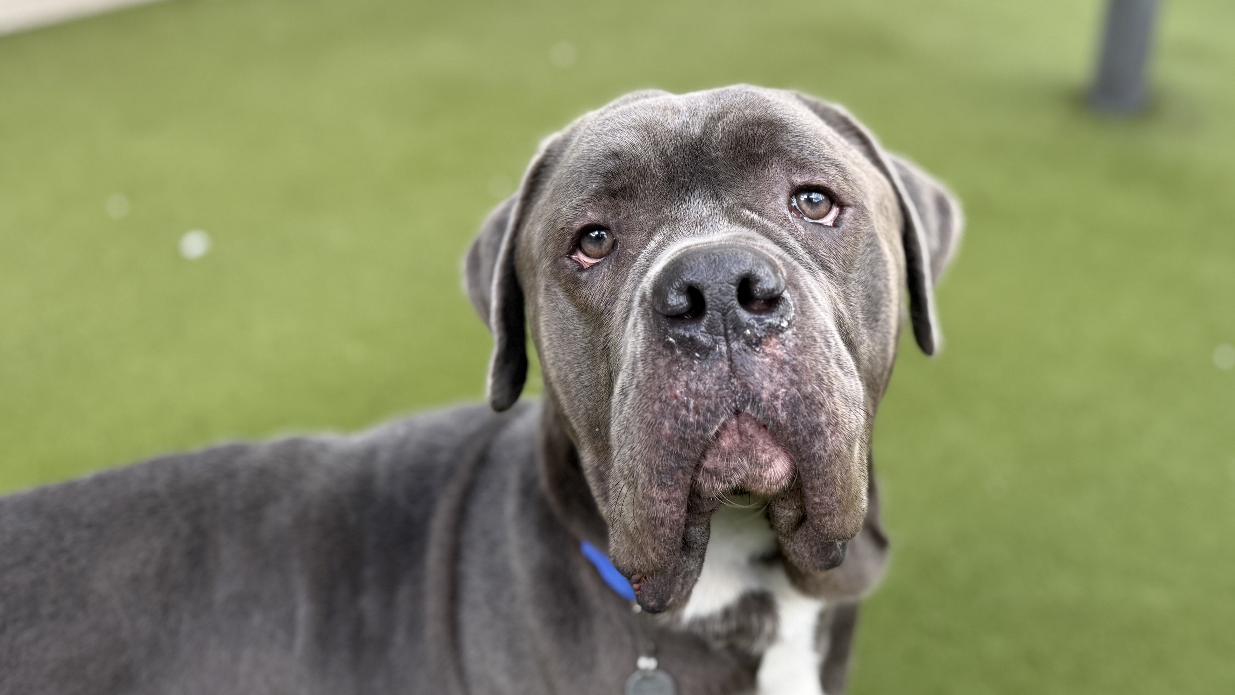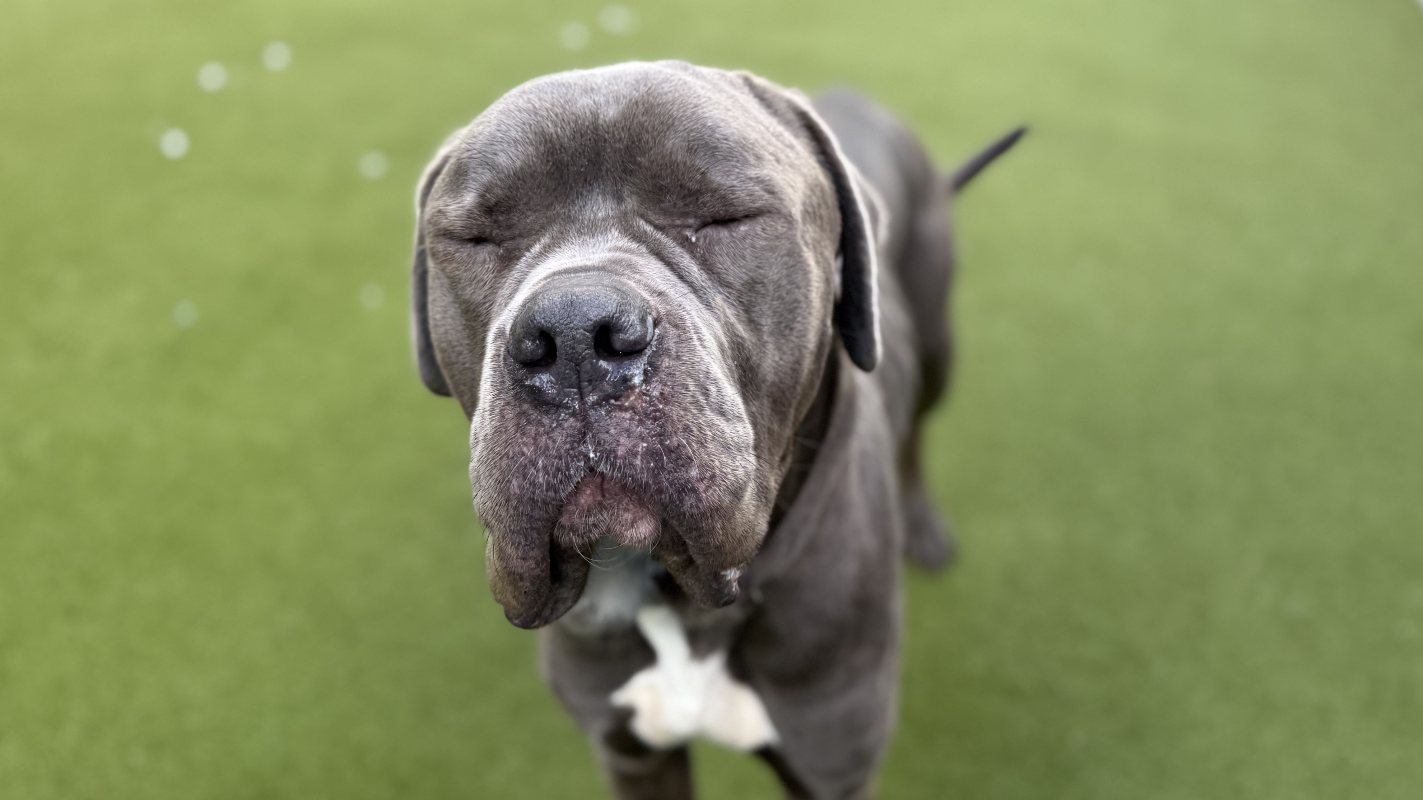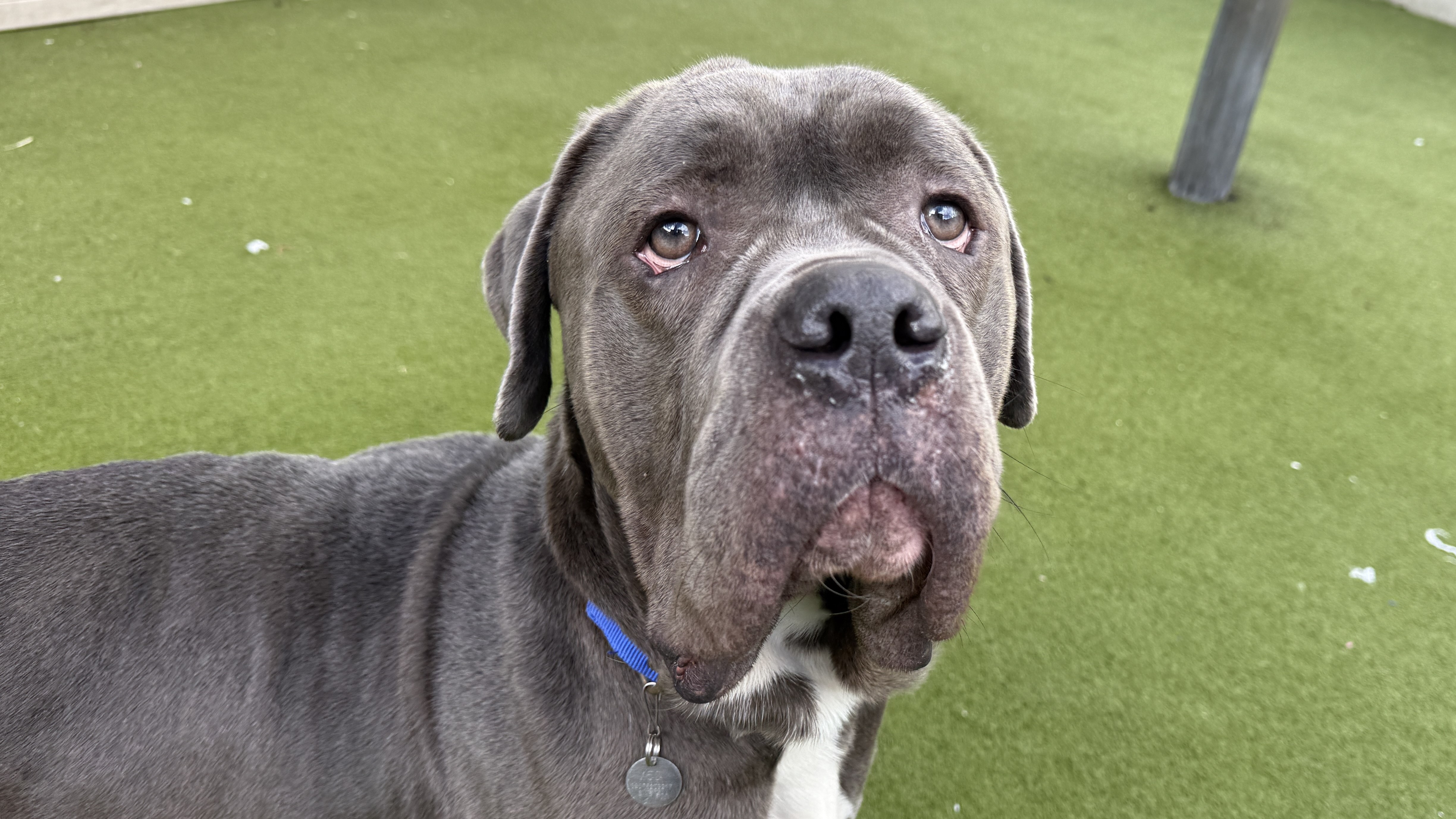 Dave arrived at Battersea as a stray, so we have no history for him. He’s a young Cane Corso with a kind nature who loves attention from his people and makes friends wherever he goes.